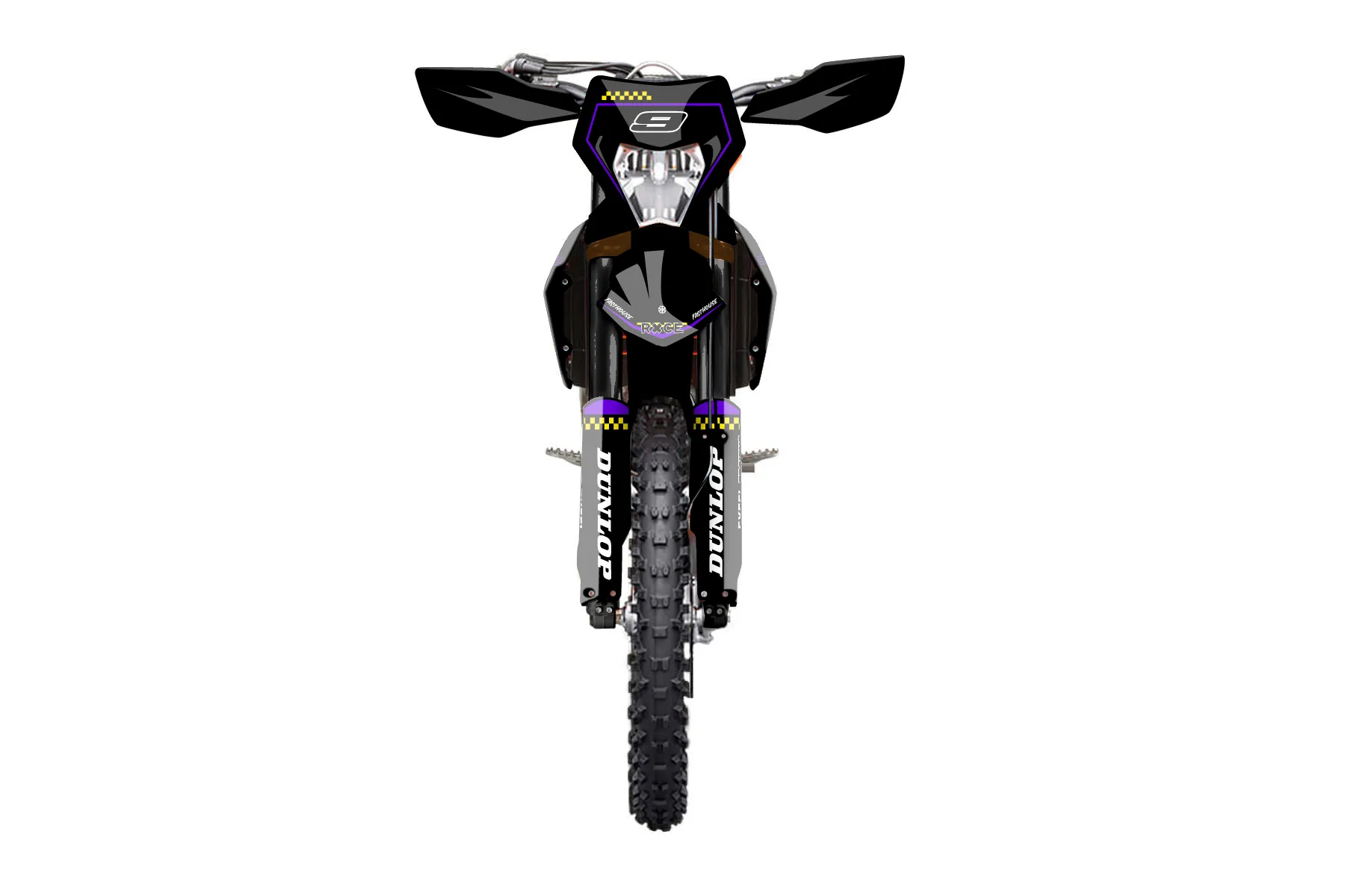 «Virtual» — готовый комплект графики серии Staple для KTM Enduro Graphic Kit KTM EXC-F 250 2024. В комплекте: графика на бак и боковые облицовки, крылья (переднее и заднее), передний щиток, номерные таблички, защита вилки. Материал: ПВХ-винил 80 мкр с холодной ламинацией 300 мкр, общая толщина 380 мкр; покрытие глянцевое или матовое на выбор. Устойчив к UV-излучению, воде, бензину и мойке высокого давления. Клей акриловый на сольвентной основе — постоянный, для гибких пластиков. На простых поверхностях монтируется без нагрева; для сложных изгибов рекомендуем фен. Этот пресет можно заказать как есть или взять за основу в конструкторе: поменять цвета, добавить стартовый номер и свой бренд. Производство — 3–5 рабочих дней, доставка по России СДЭКом или Почтой, по СНГ — курьерскими службами.