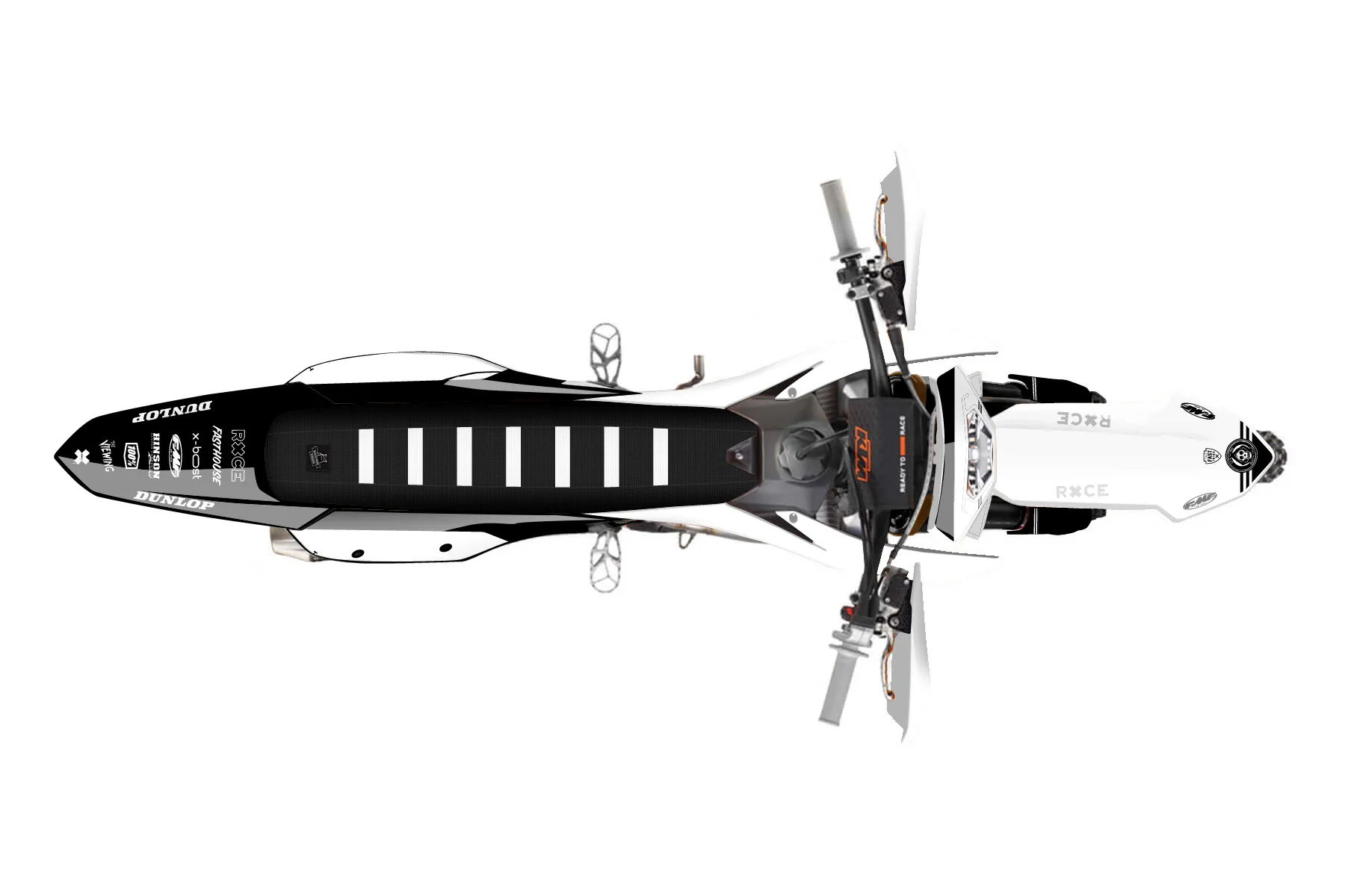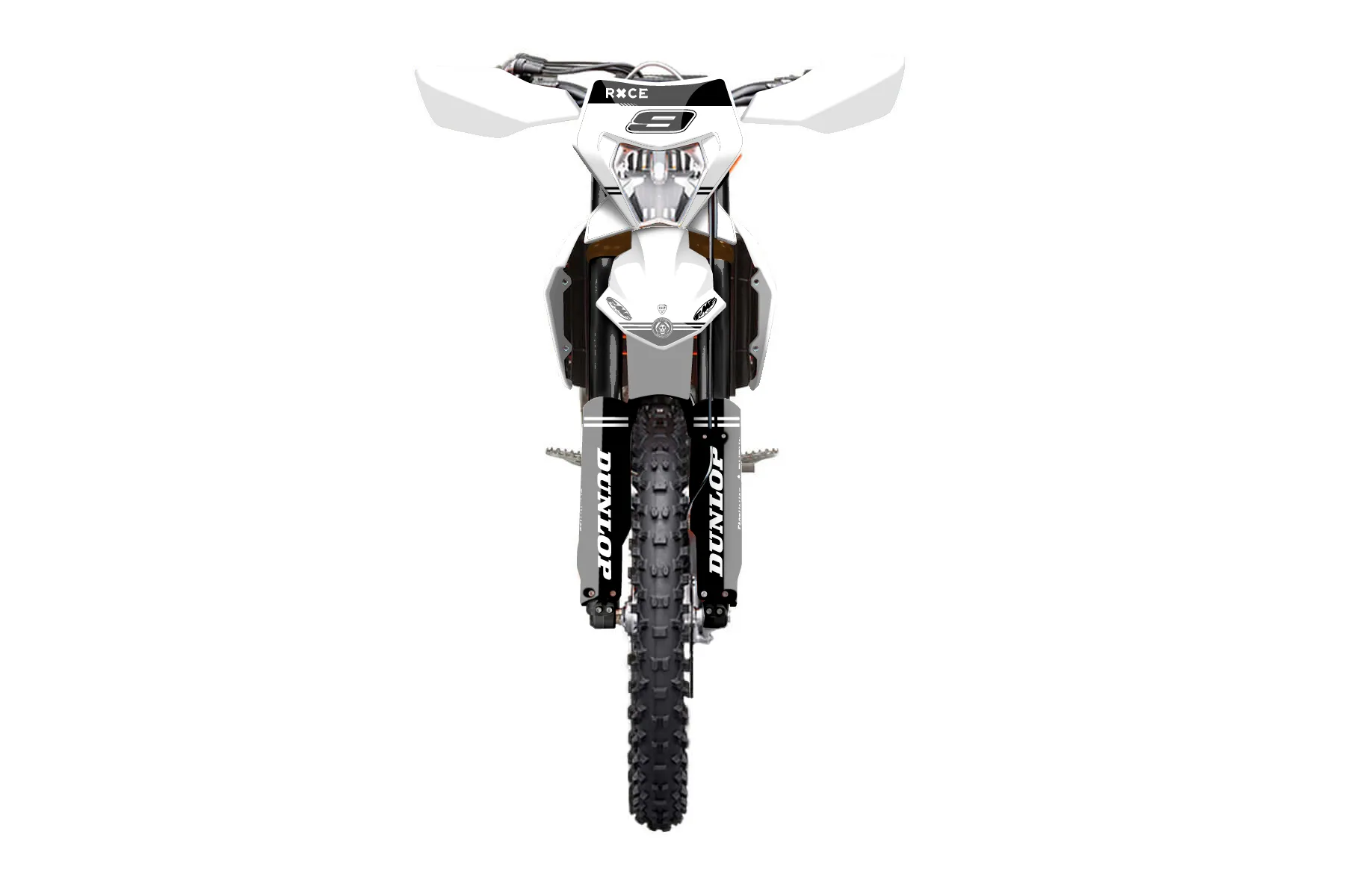 «Clear» — готовый комплект графики серии Untucked для KTM Enduro Graphic Kit KTM EXC-F 250 2024. В комплекте: графика на бак и боковые облицовки, крылья (переднее и заднее), передний щиток, номерные таблички, защита вилки. Материал: ПВХ-винил 80 мкр с холодной ламинацией 300 мкр, общая толщина 380 мкр; покрытие глянцевое или матовое на выбор. Устойчив к UV-излучению, воде, бензину и мойке высокого давления. Клей акриловый на сольвентной основе — постоянный, для гибких пластиков. На простых поверхностях монтируется без нагрева; для сложных изгибов рекомендуем фен. Этот пресет можно заказать как есть или взять за основу в конструкторе: поменять цвета, добавить стартовый номер и свой бренд. Производство — 3–5 рабочих дней, доставка по России СДЭКом или Почтой, по СНГ — курьерскими службами.