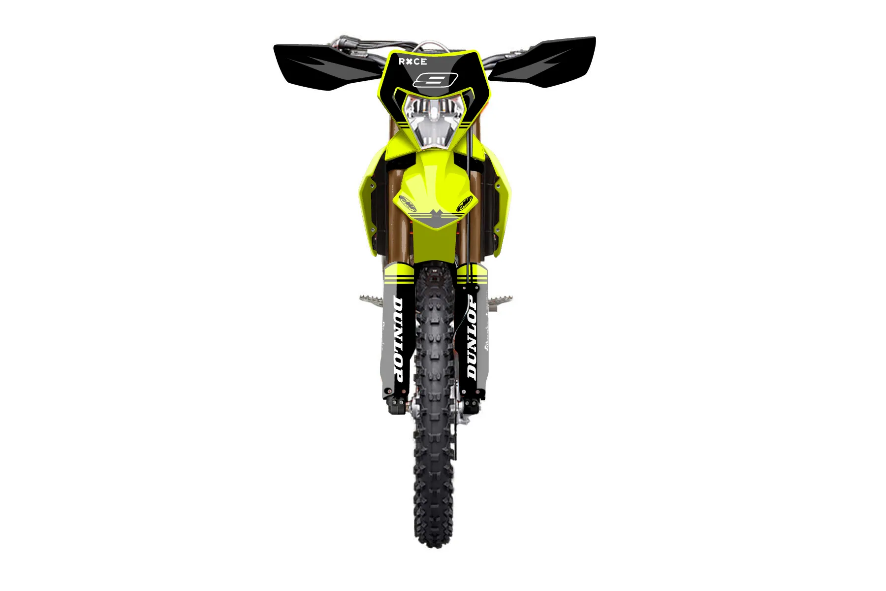 «Loose Neon» — готовый комплект графики серии Untucked для KTM Enduro Graphic Kit KTM EXC-F 250 2024. В комплекте: графика на бак и боковые облицовки, крылья (переднее и заднее), передний щиток, номерные таблички, защита вилки. Материал: ПВХ-винил 80 мкр с холодной ламинацией 300 мкр, общая толщина 380 мкр; покрытие глянцевое или матовое на выбор. Устойчив к UV-излучению, воде, бензину и мойке высокого давления. Клей акриловый на сольвентной основе — постоянный, для гибких пластиков. На простых поверхностях монтируется без нагрева; для сложных изгибов рекомендуем фен. Этот пресет можно заказать как есть или взять за основу в конструкторе: поменять цвета, добавить стартовый номер и свой бренд. Производство — 3–5 рабочих дней, доставка по России СДЭКом или Почтой, по СНГ — курьерскими службами.