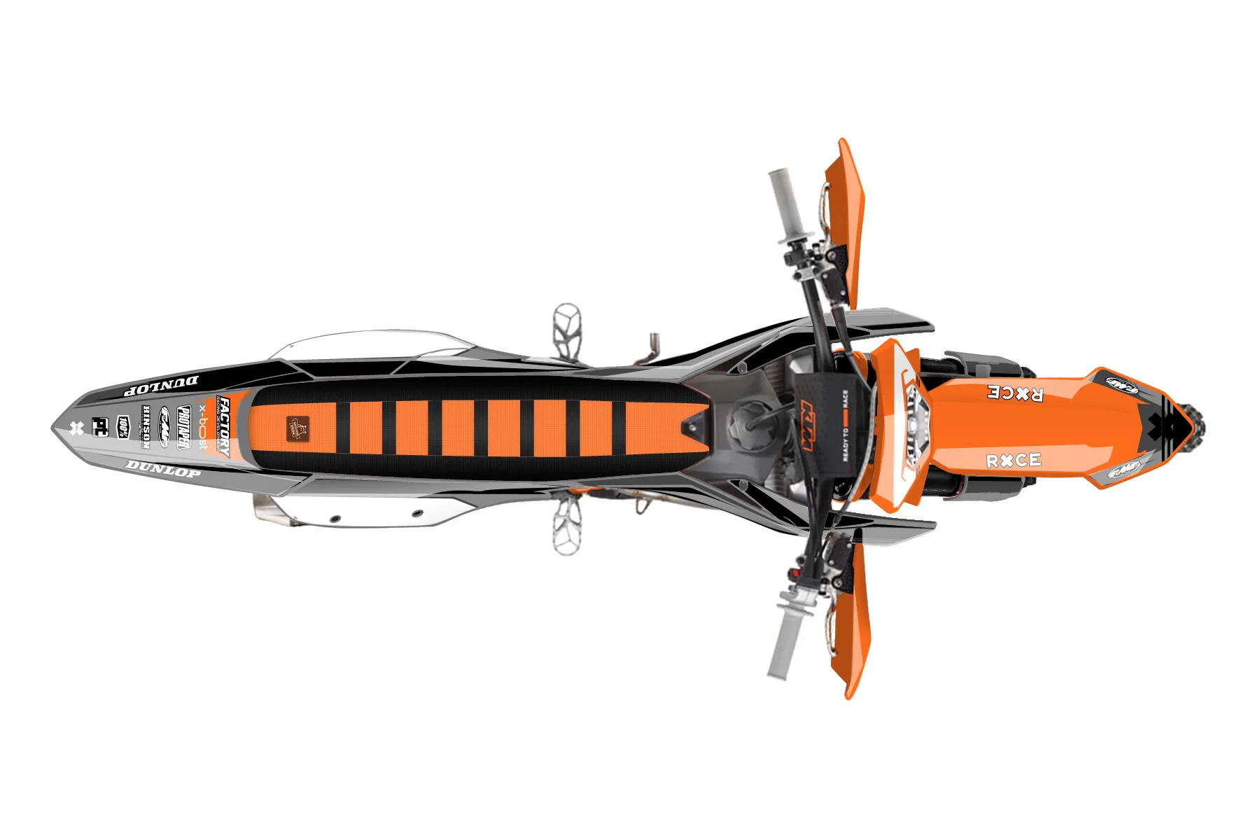 «Satisfied» — готовый комплект графики серии Untucked для KTM Enduro Graphic Kit KTM EXC-F 250 2024. В комплекте: графика на бак и боковые облицовки, крылья (переднее и заднее), передний щиток, номерные таблички, защита вилки. Материал: ПВХ-винил 80 мкр с холодной ламинацией 300 мкр, общая толщина 380 мкр; покрытие глянцевое или матовое на выбор. Устойчив к UV-излучению, воде, бензину и мойке высокого давления. Клей акриловый на сольвентной основе — постоянный, для гибких пластиков. На простых поверхностях монтируется без нагрева; для сложных изгибов рекомендуем фен. Этот пресет можно заказать как есть или взять за основу в конструкторе: поменять цвета, добавить стартовый номер и свой бренд. Производство — 3–5 рабочих дней, доставка по России СДЭКом или Почтой, по СНГ — курьерскими службами.