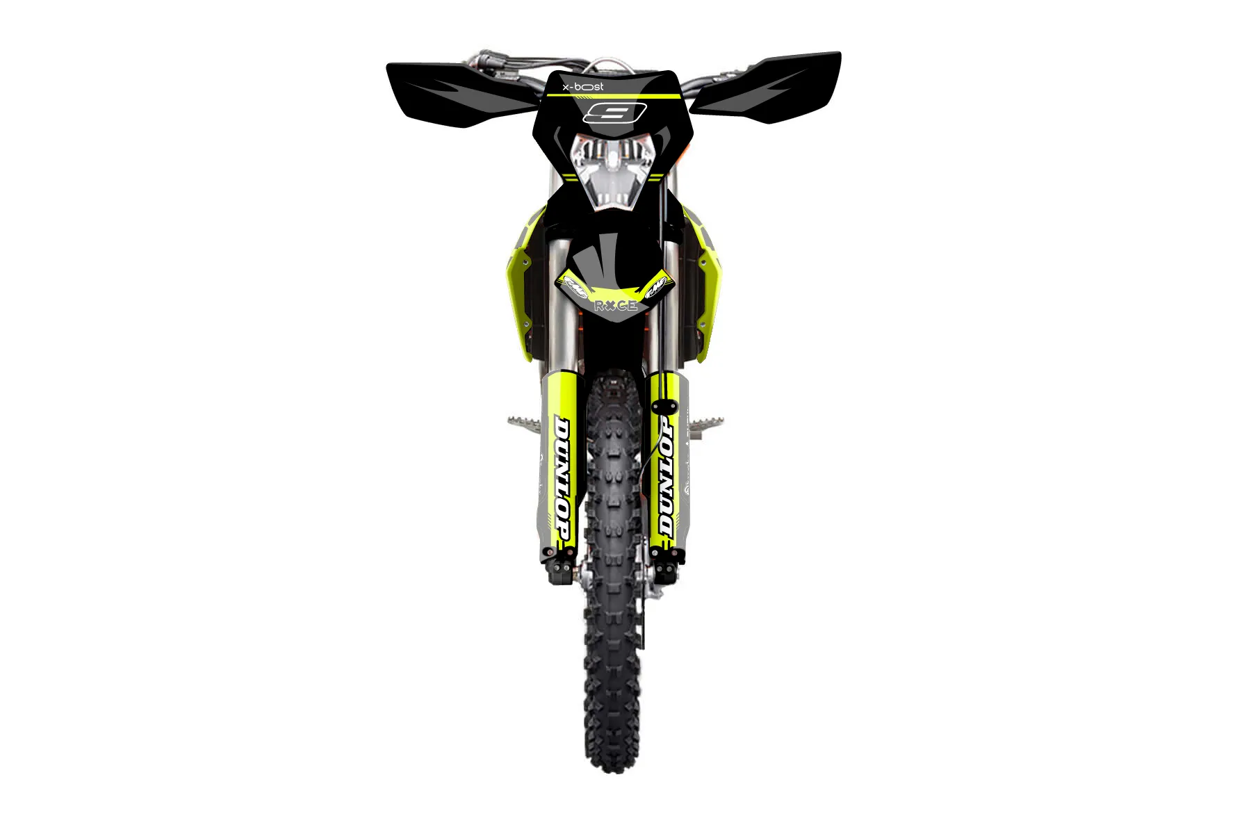 «Style Neon» — готовый комплект графики серии Untucked для KTM Enduro Graphic Kit KTM EXC-F 250 2024. В комплекте: графика на бак и боковые облицовки, крылья (переднее и заднее), передний щиток, номерные таблички, защита вилки. Материал: ПВХ-винил 80 мкр с холодной ламинацией 300 мкр, общая толщина 380 мкр; покрытие глянцевое или матовое на выбор. Устойчив к UV-излучению, воде, бензину и мойке высокого давления. Клей акриловый на сольвентной основе — постоянный, для гибких пластиков. На простых поверхностях монтируется без нагрева; для сложных изгибов рекомендуем фен. Этот пресет можно заказать как есть или взять за основу в конструкторе: поменять цвета, добавить стартовый номер и свой бренд. Производство — 3–5 рабочих дней, доставка по России СДЭКом или Почтой, по СНГ — курьерскими службами.