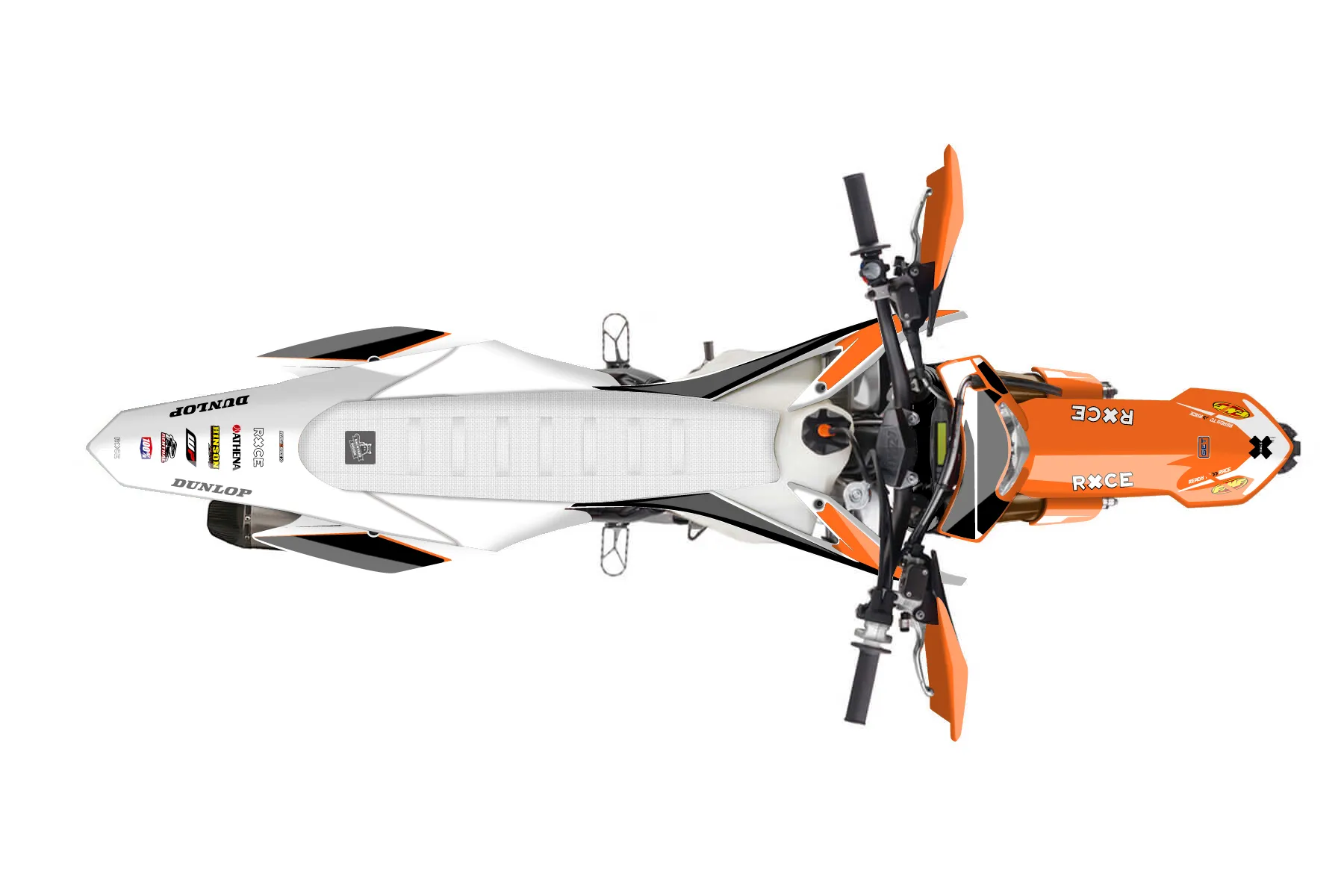«Alpha» — готовый комплект графики серии Flow для KTM Enduro Graphic Kit KTM EXC-F 350 2014. В комплекте: графика на бак и боковые облицовки, крылья (переднее и заднее), передний щиток, номерные таблички, защита вилки. Материал: ПВХ-винил 80 мкр с холодной ламинацией 300 мкр, общая толщина 380 мкр; покрытие глянцевое или матовое на выбор. Устойчив к UV-излучению, воде, бензину и мойке высокого давления. Клей акриловый на сольвентной основе — постоянный, для гибких пластиков. На простых поверхностях монтируется без нагрева; для сложных изгибов рекомендуем фен. Этот пресет можно заказать как есть или взять за основу в конструкторе: поменять цвета, добавить стартовый номер и свой бренд. Производство — 3–5 рабочих дней, доставка по России СДЭКом или Почтой, по СНГ — курьерскими службами.