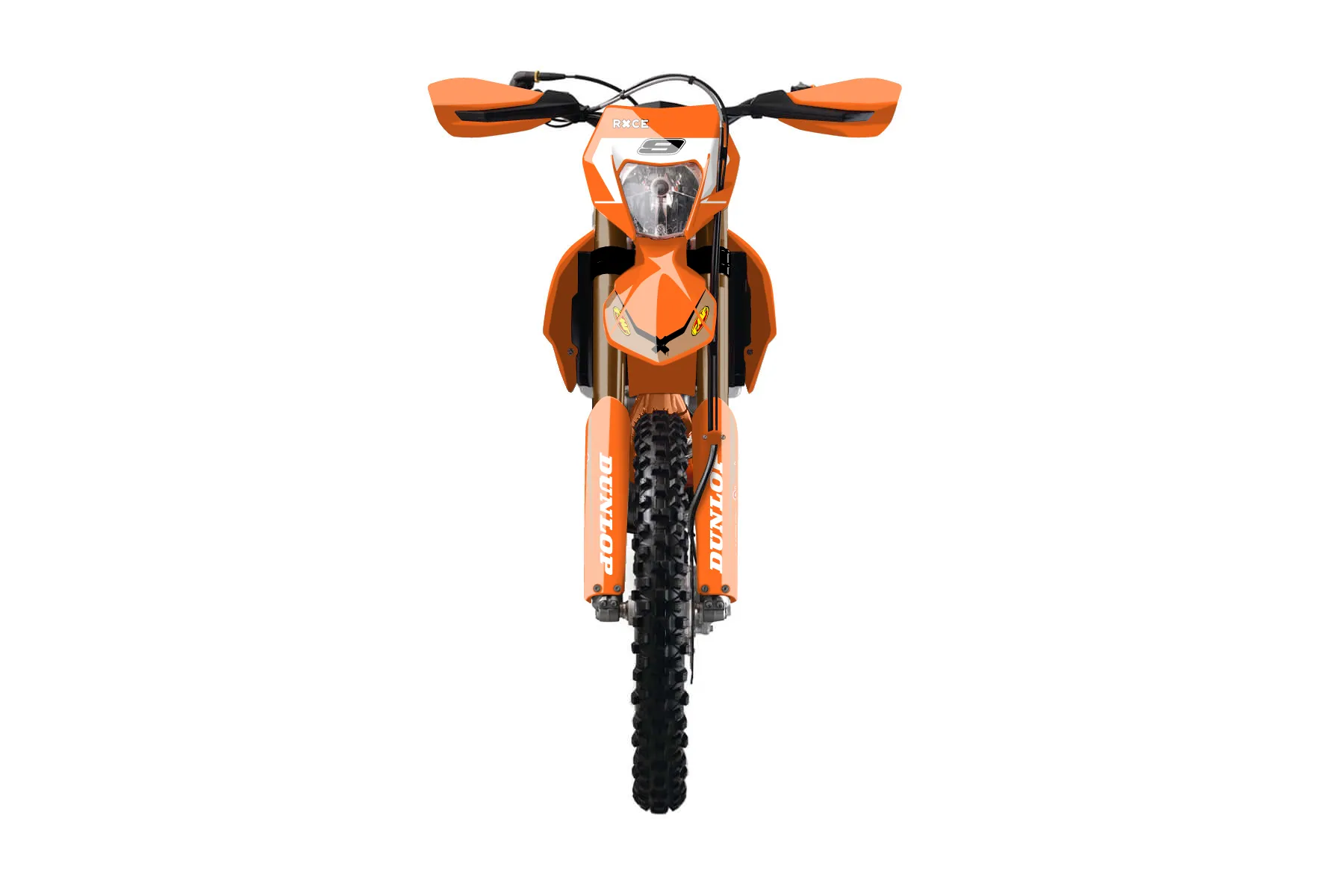 «Bang» — готовый комплект графики серии Flow для KTM Enduro Graphic Kit KTM EXC-F 350 2014. В комплекте: графика на бак и боковые облицовки, крылья (переднее и заднее), передний щиток, номерные таблички, защита вилки. Материал: ПВХ-винил 80 мкр с холодной ламинацией 300 мкр, общая толщина 380 мкр; покрытие глянцевое или матовое на выбор. Устойчив к UV-излучению, воде, бензину и мойке высокого давления. Клей акриловый на сольвентной основе — постоянный, для гибких пластиков. На простых поверхностях монтируется без нагрева; для сложных изгибов рекомендуем фен. Этот пресет можно заказать как есть или взять за основу в конструкторе: поменять цвета, добавить стартовый номер и свой бренд. Производство — 3–5 рабочих дней, доставка по России СДЭКом или Почтой, по СНГ — курьерскими службами.