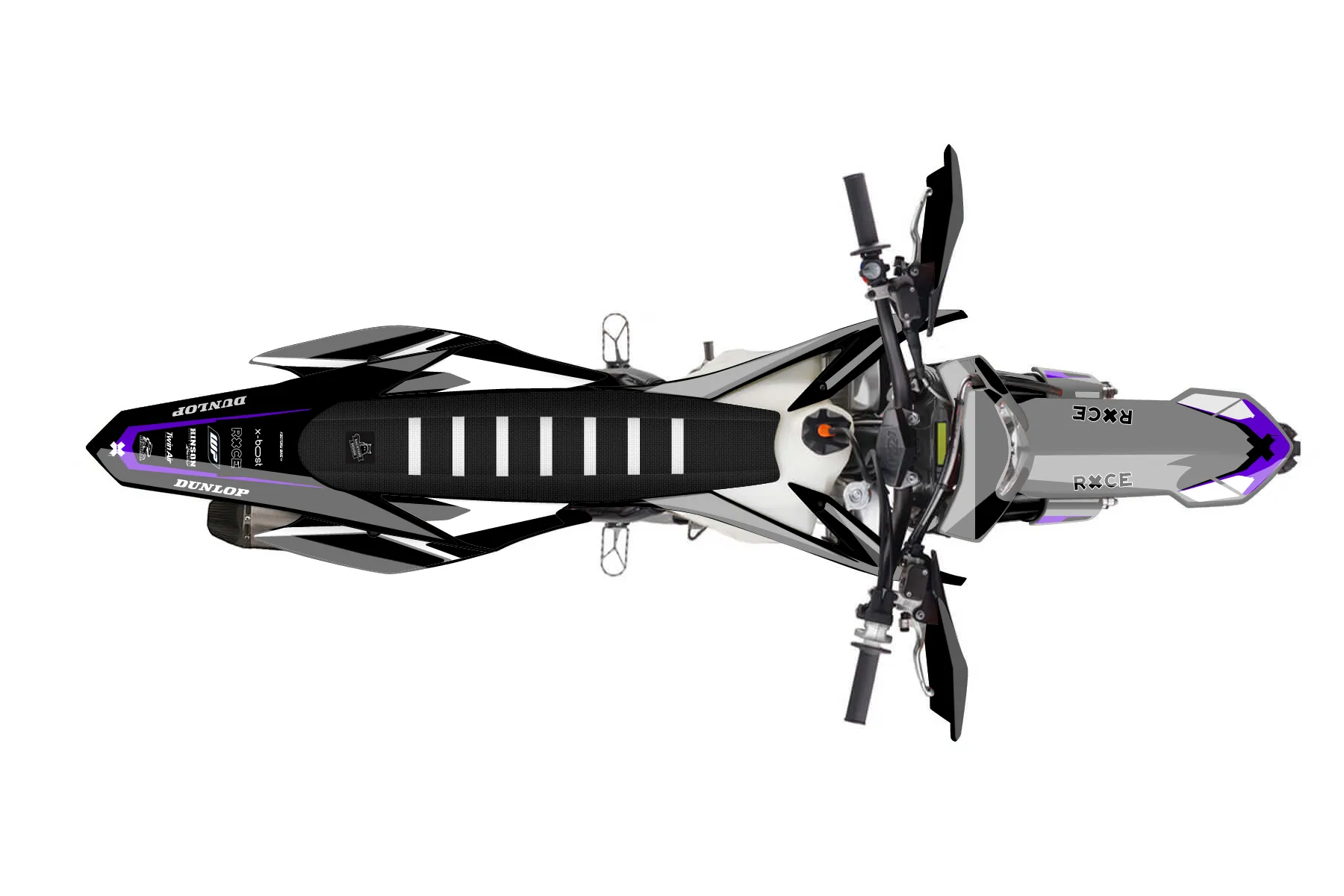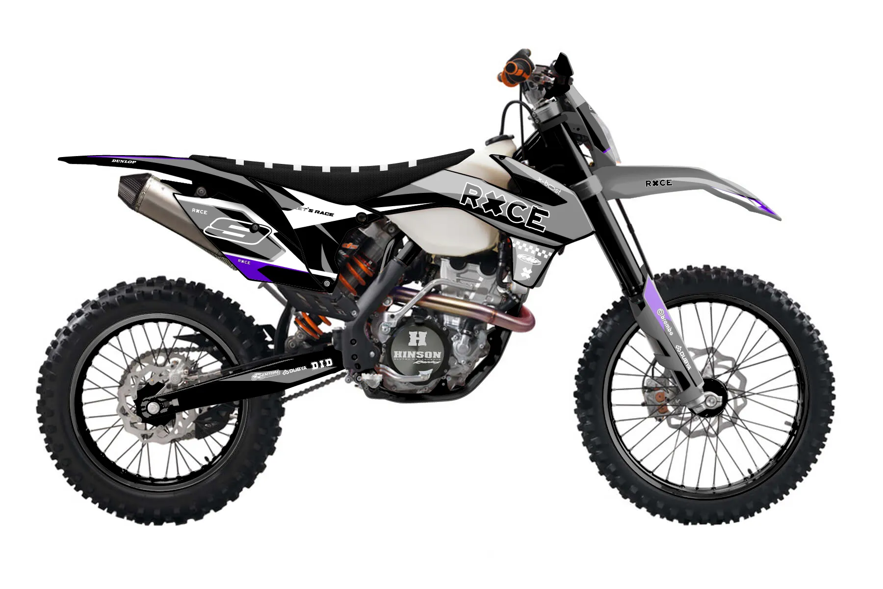 «Cyber Pirate» — готовый комплект графики серии Flow для KTM Enduro Graphic Kit KTM EXC-F 350 2014. В комплекте: графика на бак и боковые облицовки, крылья (переднее и заднее), передний щиток, номерные таблички, защита вилки. Материал: ПВХ-винил 80 мкр с холодной ламинацией 300 мкр, общая толщина 380 мкр; покрытие глянцевое или матовое на выбор. Устойчив к UV-излучению, воде, бензину и мойке высокого давления. Клей акриловый на сольвентной основе — постоянный, для гибких пластиков. На простых поверхностях монтируется без нагрева; для сложных изгибов рекомендуем фен. Этот пресет можно заказать как есть или взять за основу в конструкторе: поменять цвета, добавить стартовый номер и свой бренд. Производство — 3–5 рабочих дней, доставка по России СДЭКом или Почтой, по СНГ — курьерскими службами.