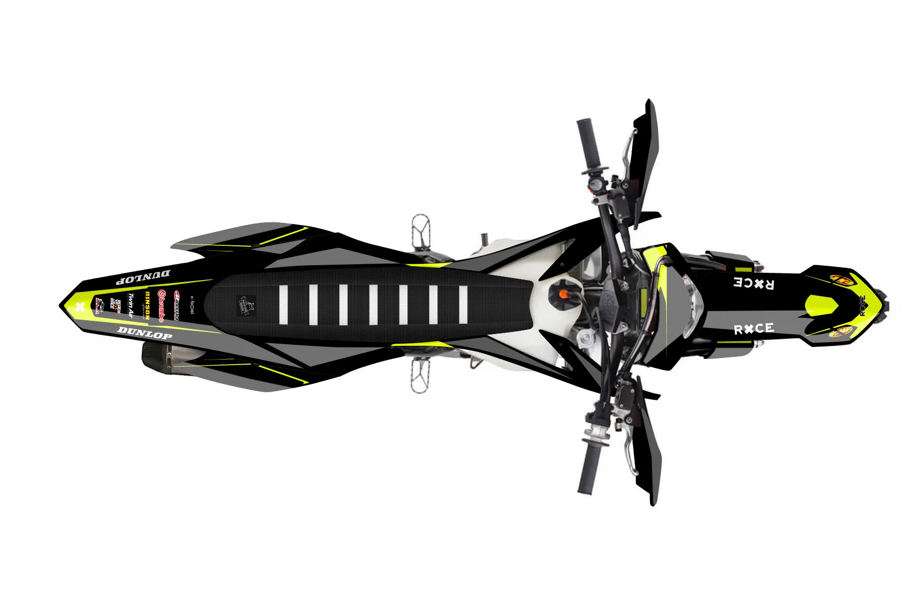 «Form» — готовый комплект графики серии Flow для KTM Enduro Graphic Kit KTM EXC-F 350 2014. В комплекте: графика на бак и боковые облицовки, крылья (переднее и заднее), передний щиток, номерные таблички, защита вилки. Материал: ПВХ-винил 80 мкр с холодной ламинацией 300 мкр, общая толщина 380 мкр; покрытие глянцевое или матовое на выбор. Устойчив к UV-излучению, воде, бензину и мойке высокого давления. Клей акриловый на сольвентной основе — постоянный, для гибких пластиков. На простых поверхностях монтируется без нагрева; для сложных изгибов рекомендуем фен. Этот пресет можно заказать как есть или взять за основу в конструкторе: поменять цвета, добавить стартовый номер и свой бренд. Производство — 3–5 рабочих дней, доставка по России СДЭКом или Почтой, по СНГ — курьерскими службами.