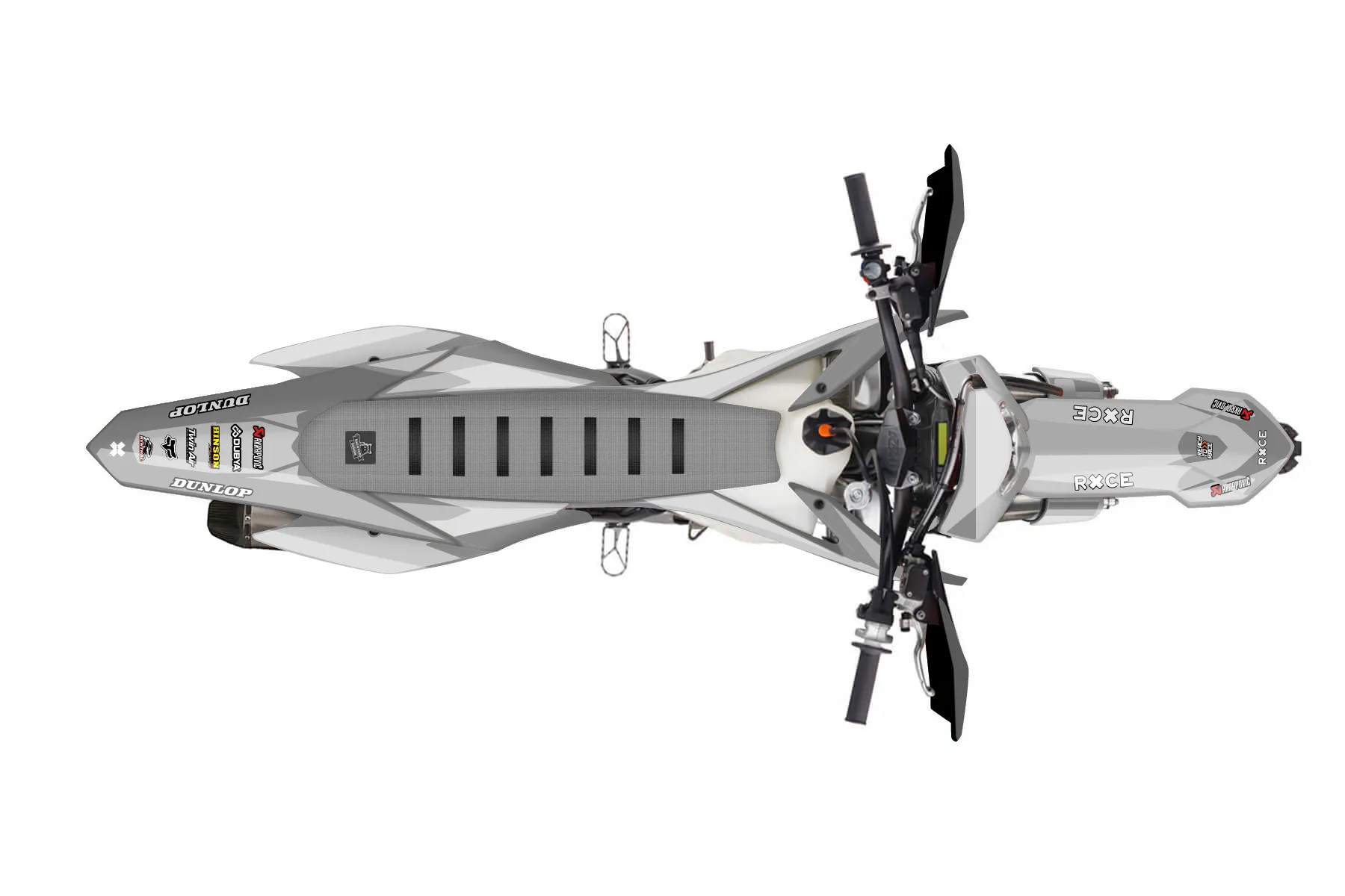 «Simple» — готовый комплект графики серии Flow для KTM Enduro Graphic Kit KTM EXC-F 350 2014. В комплекте: графика на бак и боковые облицовки, крылья (переднее и заднее), передний щиток, номерные таблички, защита вилки. Материал: ПВХ-винил 80 мкр с холодной ламинацией 300 мкр, общая толщина 380 мкр; покрытие глянцевое или матовое на выбор. Устойчив к UV-излучению, воде, бензину и мойке высокого давления. Клей акриловый на сольвентной основе — постоянный, для гибких пластиков. На простых поверхностях монтируется без нагрева; для сложных изгибов рекомендуем фен. Этот пресет можно заказать как есть или взять за основу в конструкторе: поменять цвета, добавить стартовый номер и свой бренд. Производство — 3–5 рабочих дней, доставка по России СДЭКом или Почтой, по СНГ — курьерскими службами.