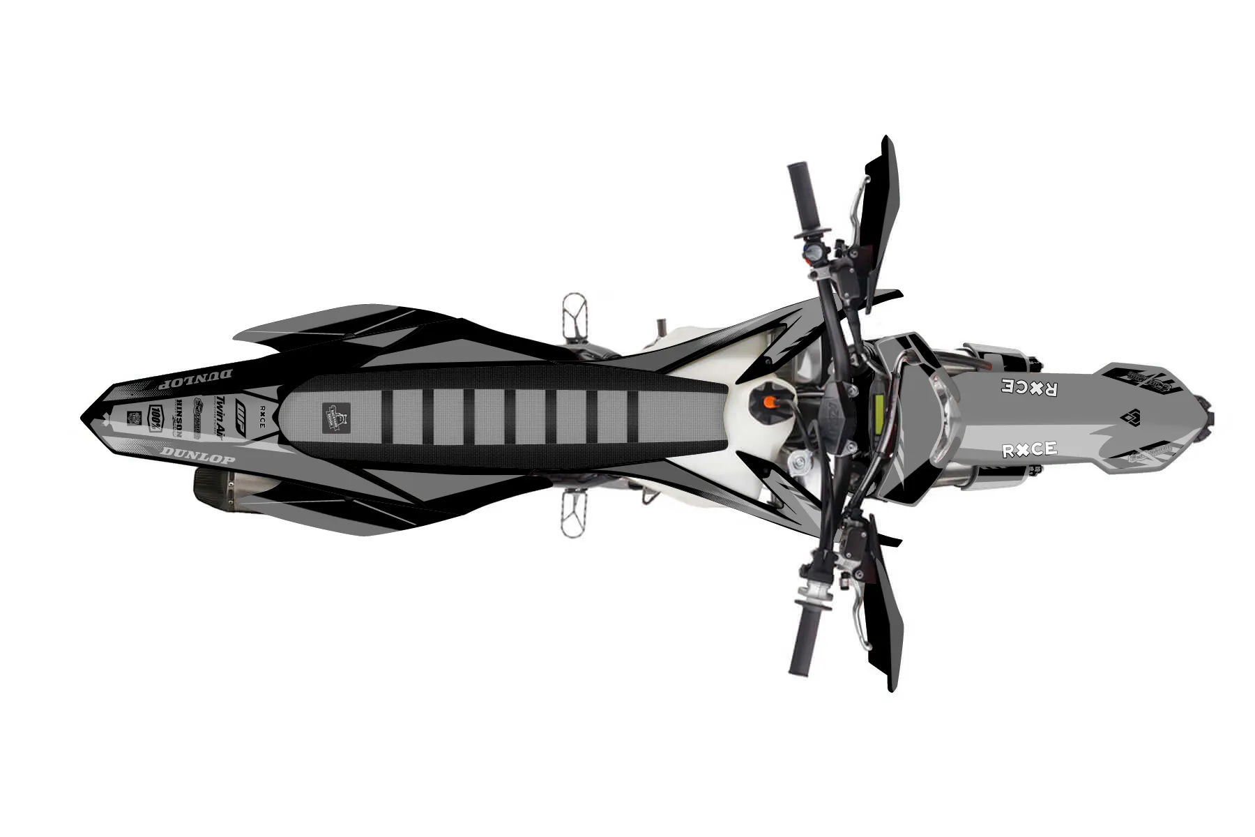 «Grip» — готовый комплект графики серии Maverick для KTM Enduro Graphic Kit KTM EXC-F 350 2014. В комплекте: графика на бак и боковые облицовки, крылья (переднее и заднее), передний щиток, номерные таблички, защита вилки. Материал: ПВХ-винил 80 мкр с холодной ламинацией 300 мкр, общая толщина 380 мкр; покрытие глянцевое или матовое на выбор. Устойчив к UV-излучению, воде, бензину и мойке высокого давления. Клей акриловый на сольвентной основе — постоянный, для гибких пластиков. На простых поверхностях монтируется без нагрева; для сложных изгибов рекомендуем фен. Этот пресет можно заказать как есть или взять за основу в конструкторе: поменять цвета, добавить стартовый номер и свой бренд. Производство — 3–5 рабочих дней, доставка по России СДЭКом или Почтой, по СНГ — курьерскими службами.