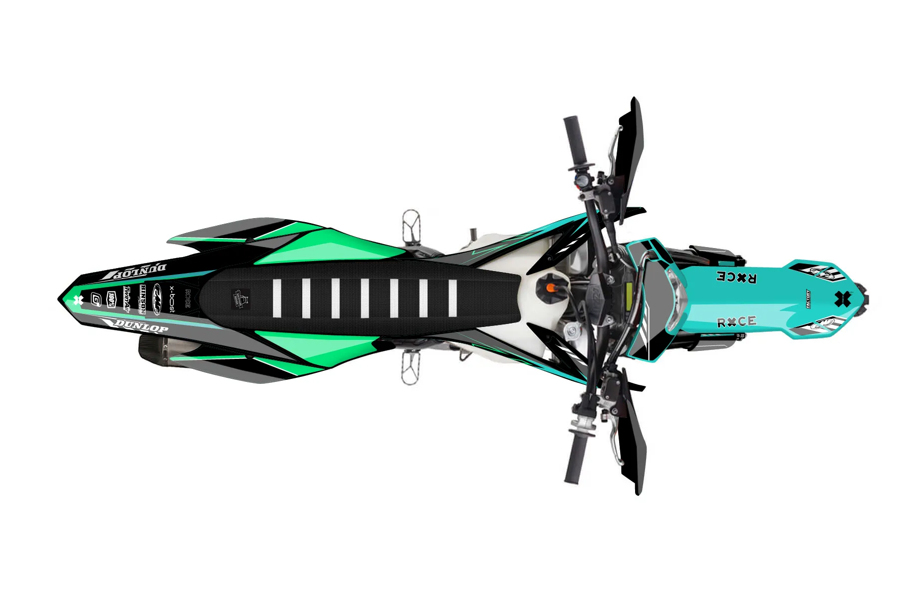 «Refuse» — готовый комплект графики серии Maverick для KTM Enduro Graphic Kit KTM EXC-F 350 2014. В комплекте: графика на бак и боковые облицовки, крылья (переднее и заднее), передний щиток, номерные таблички, защита вилки. Материал: ПВХ-винил 80 мкр с холодной ламинацией 300 мкр, общая толщина 380 мкр; покрытие глянцевое или матовое на выбор. Устойчив к UV-излучению, воде, бензину и мойке высокого давления. Клей акриловый на сольвентной основе — постоянный, для гибких пластиков. На простых поверхностях монтируется без нагрева; для сложных изгибов рекомендуем фен. Этот пресет можно заказать как есть или взять за основу в конструкторе: поменять цвета, добавить стартовый номер и свой бренд. Производство — 3–5 рабочих дней, доставка по России СДЭКом или Почтой, по СНГ — курьерскими службами.
