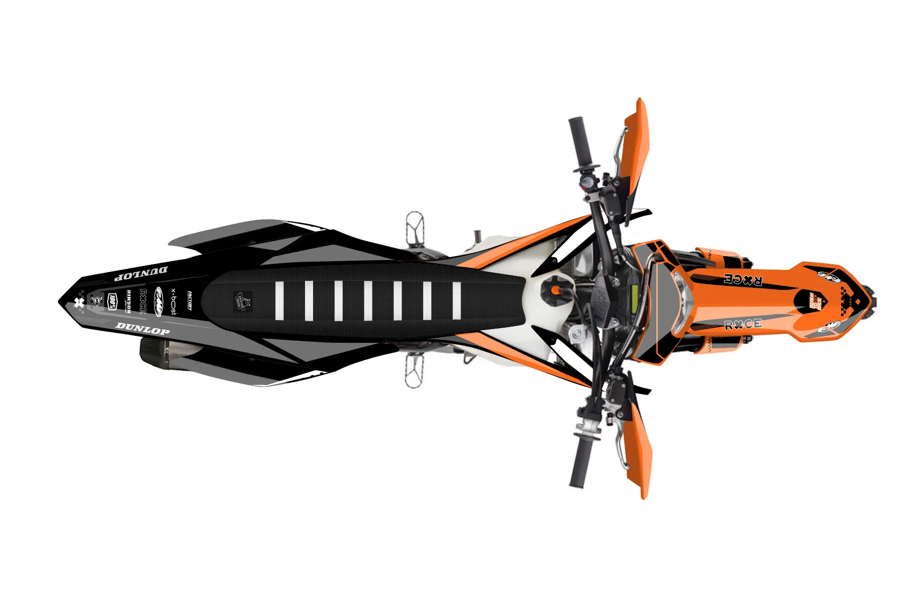«RacerX» — готовый комплект графики серии Staple для KTM Enduro Graphic Kit KTM EXC-F 350 2014. В комплекте: графика на бак и боковые облицовки, крылья (переднее и заднее), передний щиток, номерные таблички, защита вилки. Материал: ПВХ-винил 80 мкр с холодной ламинацией 300 мкр, общая толщина 380 мкр; покрытие глянцевое или матовое на выбор. Устойчив к UV-излучению, воде, бензину и мойке высокого давления. Клей акриловый на сольвентной основе — постоянный, для гибких пластиков. На простых поверхностях монтируется без нагрева; для сложных изгибов рекомендуем фен. Этот пресет можно заказать как есть или взять за основу в конструкторе: поменять цвета, добавить стартовый номер и свой бренд. Производство — 3–5 рабочих дней, доставка по России СДЭКом или Почтой, по СНГ — курьерскими службами.
