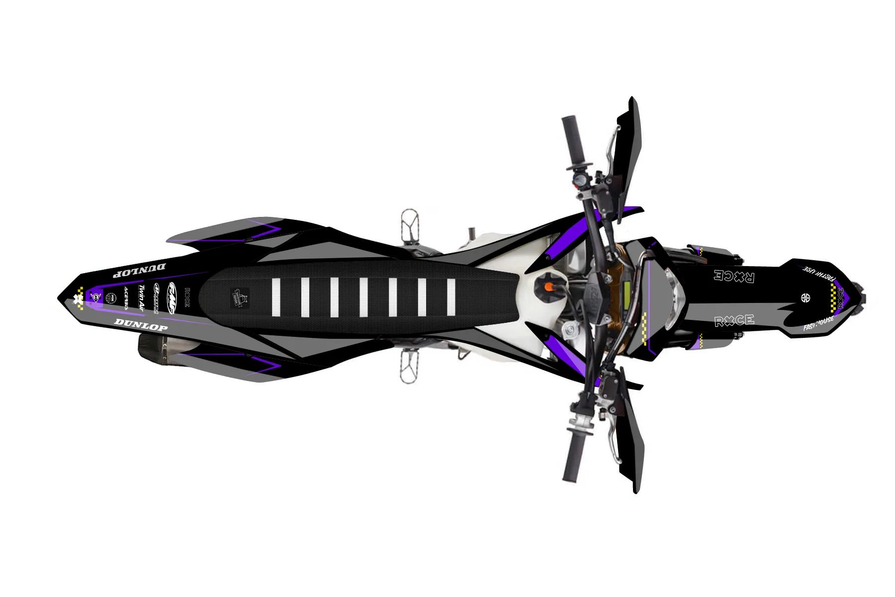 «Virtual» — готовый комплект графики серии Staple для KTM Enduro Graphic Kit KTM EXC-F 350 2014. В комплекте: графика на бак и боковые облицовки, крылья (переднее и заднее), передний щиток, номерные таблички, защита вилки. Материал: ПВХ-винил 80 мкр с холодной ламинацией 300 мкр, общая толщина 380 мкр; покрытие глянцевое или матовое на выбор. Устойчив к UV-излучению, воде, бензину и мойке высокого давления. Клей акриловый на сольвентной основе — постоянный, для гибких пластиков. На простых поверхностях монтируется без нагрева; для сложных изгибов рекомендуем фен. Этот пресет можно заказать как есть или взять за основу в конструкторе: поменять цвета, добавить стартовый номер и свой бренд. Производство — 3–5 рабочих дней, доставка по России СДЭКом или Почтой, по СНГ — курьерскими службами.
