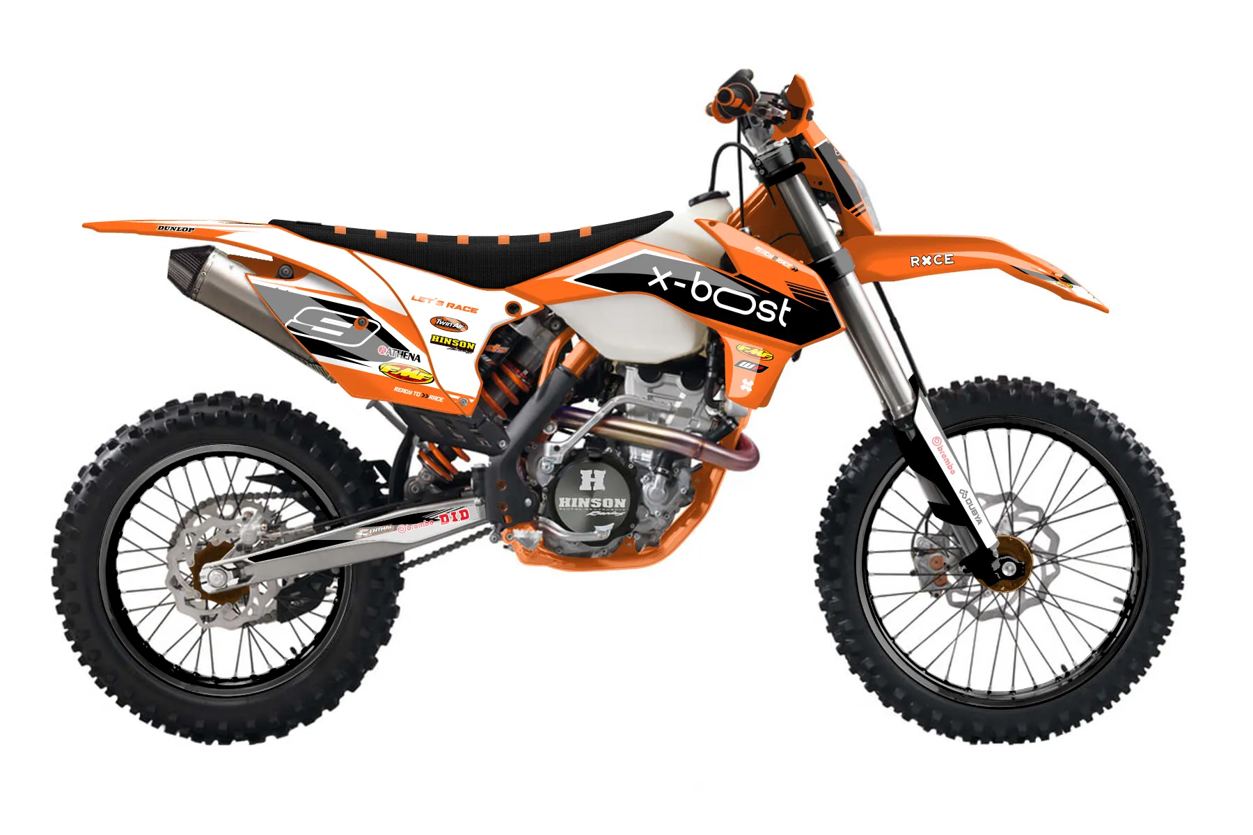 «Proven» — готовый комплект графики серии Untucked для KTM Enduro Graphic Kit KTM EXC-F 350 2014. В комплекте: графика на бак и боковые облицовки, крылья (переднее и заднее), передний щиток, номерные таблички, защита вилки. Материал: ПВХ-винил 80 мкр с холодной ламинацией 300 мкр, общая толщина 380 мкр; покрытие глянцевое или матовое на выбор. Устойчив к UV-излучению, воде, бензину и мойке высокого давления. Клей акриловый на сольвентной основе — постоянный, для гибких пластиков. На простых поверхностях монтируется без нагрева; для сложных изгибов рекомендуем фен. Этот пресет можно заказать как есть или взять за основу в конструкторе: поменять цвета, добавить стартовый номер и свой бренд. Производство — 3–5 рабочих дней, доставка по России СДЭКом или Почтой, по СНГ — курьерскими службами.