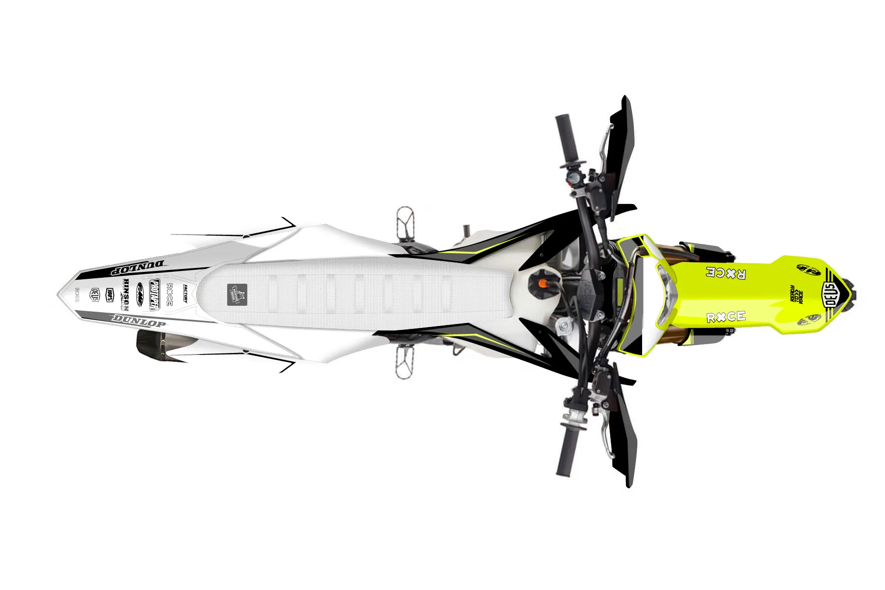 «Ride Neon» — готовый комплект графики серии Untucked для KTM Enduro Graphic Kit KTM EXC-F 350 2014. В комплекте: графика на бак и боковые облицовки, крылья (переднее и заднее), передний щиток, номерные таблички, защита вилки. Материал: ПВХ-винил 80 мкр с холодной ламинацией 300 мкр, общая толщина 380 мкр; покрытие глянцевое или матовое на выбор. Устойчив к UV-излучению, воде, бензину и мойке высокого давления. Клей акриловый на сольвентной основе — постоянный, для гибких пластиков. На простых поверхностях монтируется без нагрева; для сложных изгибов рекомендуем фен. Этот пресет можно заказать как есть или взять за основу в конструкторе: поменять цвета, добавить стартовый номер и свой бренд. Производство — 3–5 рабочих дней, доставка по России СДЭКом или Почтой, по СНГ — курьерскими службами.