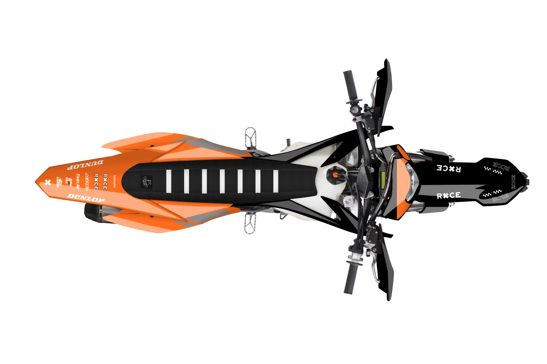 «Beyond» — готовый комплект графики серии Flow для KTM Enduro Graphic Kit KTM EXC-F 350 2016. В комплекте: графика на бак и боковые облицовки, крылья (переднее и заднее), передний щиток, номерные таблички, защита вилки. Материал: ПВХ-винил 80 мкр с холодной ламинацией 300 мкр, общая толщина 380 мкр; покрытие глянцевое или матовое на выбор. Устойчив к UV-излучению, воде, бензину и мойке высокого давления. Клей акриловый на сольвентной основе — постоянный, для гибких пластиков. На простых поверхностях монтируется без нагрева; для сложных изгибов рекомендуем фен. Этот пресет можно заказать как есть или взять за основу в конструкторе: поменять цвета, добавить стартовый номер и свой бренд. Производство — 3–5 рабочих дней, доставка по России СДЭКом или Почтой, по СНГ — курьерскими службами.