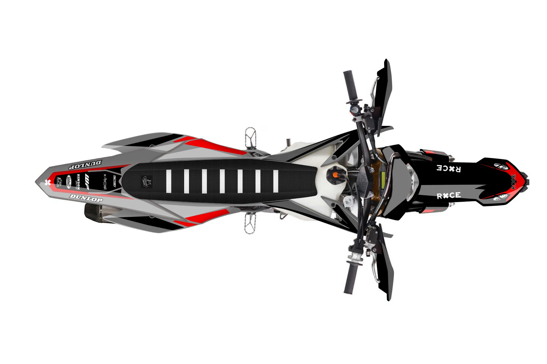«Cozy» — готовый комплект графики серии Flow для KTM Enduro Graphic Kit KTM EXC-F 350 2016. В комплекте: графика на бак и боковые облицовки, крылья (переднее и заднее), передний щиток, номерные таблички, защита вилки. Материал: ПВХ-винил 80 мкр с холодной ламинацией 300 мкр, общая толщина 380 мкр; покрытие глянцевое или матовое на выбор. Устойчив к UV-излучению, воде, бензину и мойке высокого давления. Клей акриловый на сольвентной основе — постоянный, для гибких пластиков. На простых поверхностях монтируется без нагрева; для сложных изгибов рекомендуем фен. Этот пресет можно заказать как есть или взять за основу в конструкторе: поменять цвета, добавить стартовый номер и свой бренд. Производство — 3–5 рабочих дней, доставка по России СДЭКом или Почтой, по СНГ — курьерскими службами.