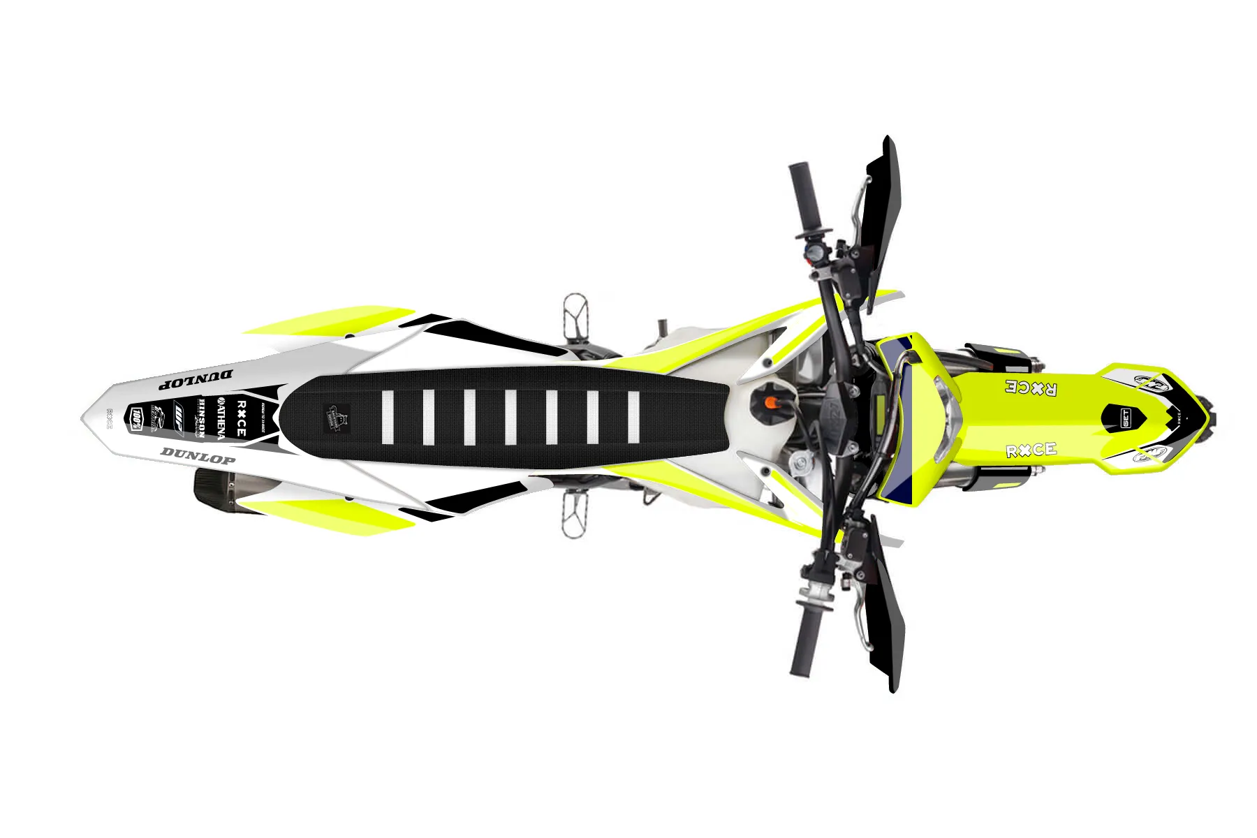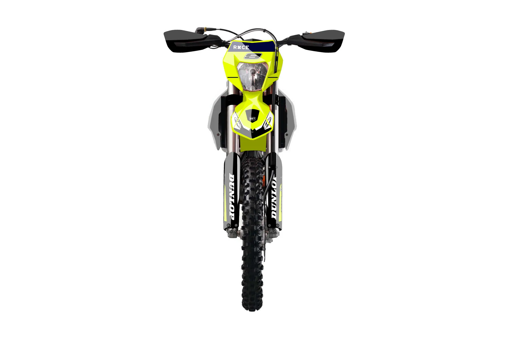 «Rise Fluo» — готовый комплект графики серии Flow для KTM Enduro Graphic Kit KTM EXC-F 350 2016. В комплекте: графика на бак и боковые облицовки, крылья (переднее и заднее), передний щиток, номерные таблички, защита вилки. Материал: ПВХ-винил 80 мкр с холодной ламинацией 300 мкр, общая толщина 380 мкр; покрытие глянцевое или матовое на выбор. Устойчив к UV-излучению, воде, бензину и мойке высокого давления. Клей акриловый на сольвентной основе — постоянный, для гибких пластиков. На простых поверхностях монтируется без нагрева; для сложных изгибов рекомендуем фен. Этот пресет можно заказать как есть или взять за основу в конструкторе: поменять цвета, добавить стартовый номер и свой бренд. Производство — 3–5 рабочих дней, доставка по России СДЭКом или Почтой, по СНГ — курьерскими службами.