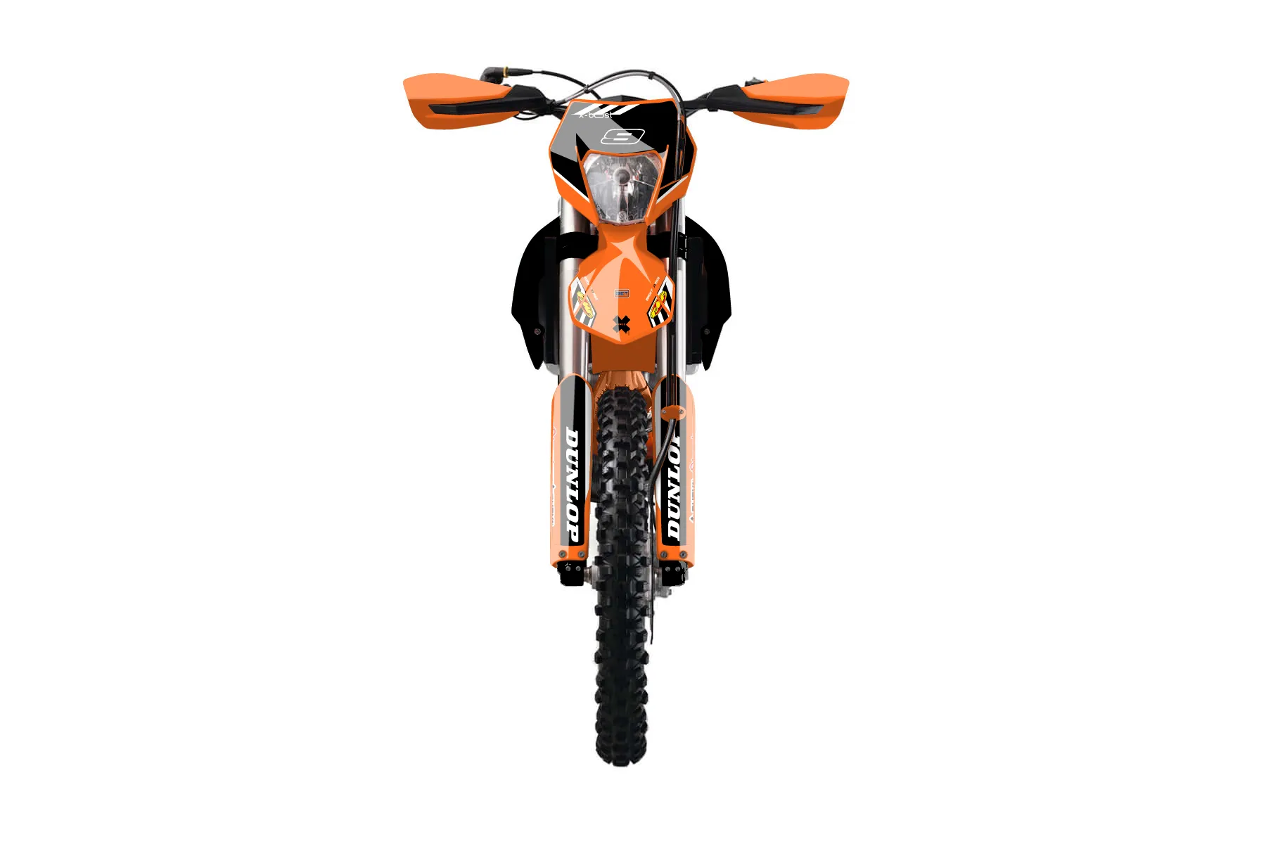 «Agile» — готовый комплект графики серии Maverick для KTM Enduro Graphic Kit KTM EXC-F 350 2016. В комплекте: графика на бак и боковые облицовки, крылья (переднее и заднее), передний щиток, номерные таблички, защита вилки. Материал: ПВХ-винил 80 мкр с холодной ламинацией 300 мкр, общая толщина 380 мкр; покрытие глянцевое или матовое на выбор. Устойчив к UV-излучению, воде, бензину и мойке высокого давления. Клей акриловый на сольвентной основе — постоянный, для гибких пластиков. На простых поверхностях монтируется без нагрева; для сложных изгибов рекомендуем фен. Этот пресет можно заказать как есть или взять за основу в конструкторе: поменять цвета, добавить стартовый номер и свой бренд. Производство — 3–5 рабочих дней, доставка по России СДЭКом или Почтой, по СНГ — курьерскими службами.