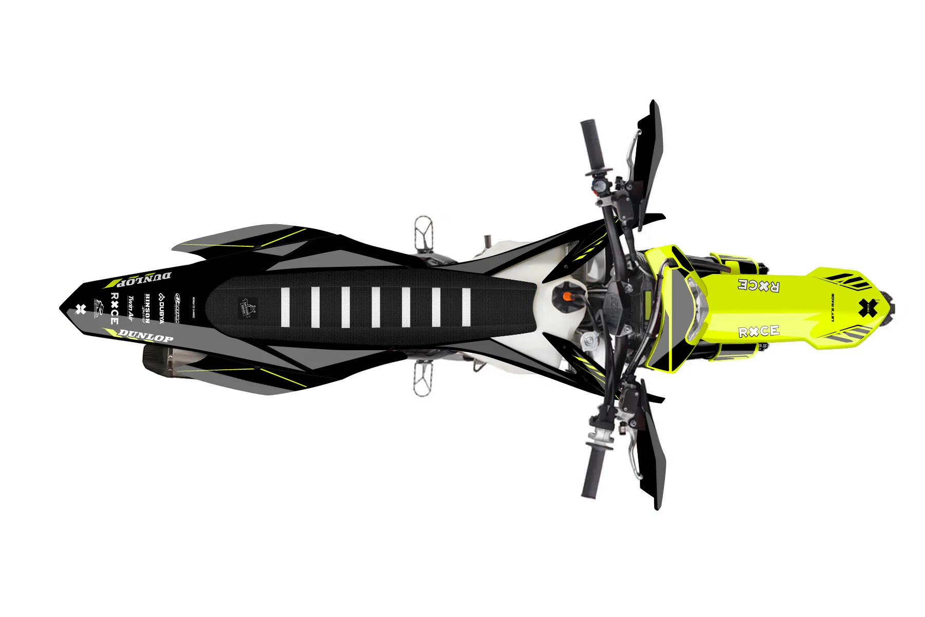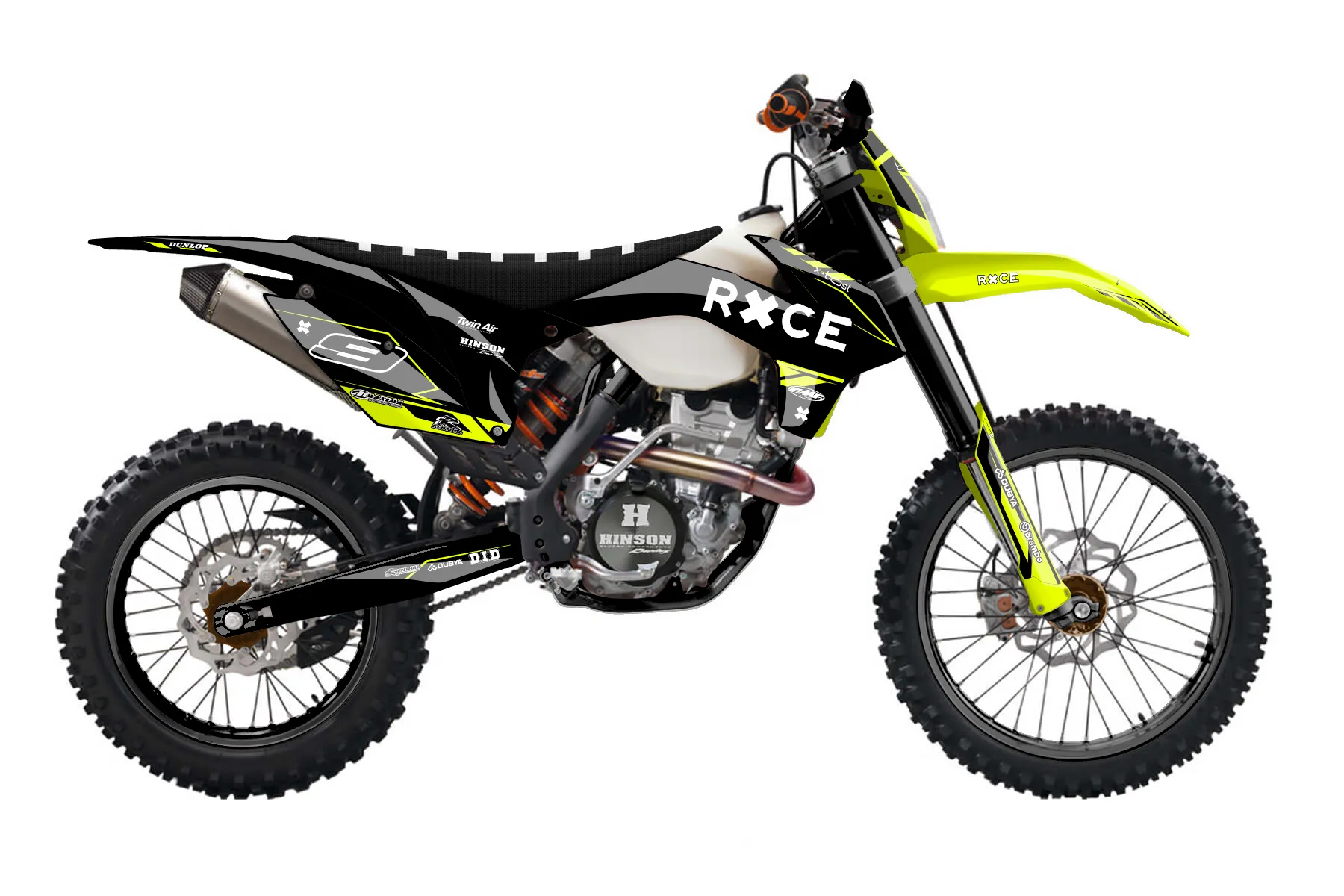 «Kitted Neon» — готовый комплект графики серии Maverick для KTM Enduro Graphic Kit KTM EXC-F 350 2016. В комплекте: графика на бак и боковые облицовки, крылья (переднее и заднее), передний щиток, номерные таблички, защита вилки. Материал: ПВХ-винил 80 мкр с холодной ламинацией 300 мкр, общая толщина 380 мкр; покрытие глянцевое или матовое на выбор. Устойчив к UV-излучению, воде, бензину и мойке высокого давления. Клей акриловый на сольвентной основе — постоянный, для гибких пластиков. На простых поверхностях монтируется без нагрева; для сложных изгибов рекомендуем фен. Этот пресет можно заказать как есть или взять за основу в конструкторе: поменять цвета, добавить стартовый номер и свой бренд. Производство — 3–5 рабочих дней, доставка по России СДЭКом или Почтой, по СНГ — курьерскими службами.