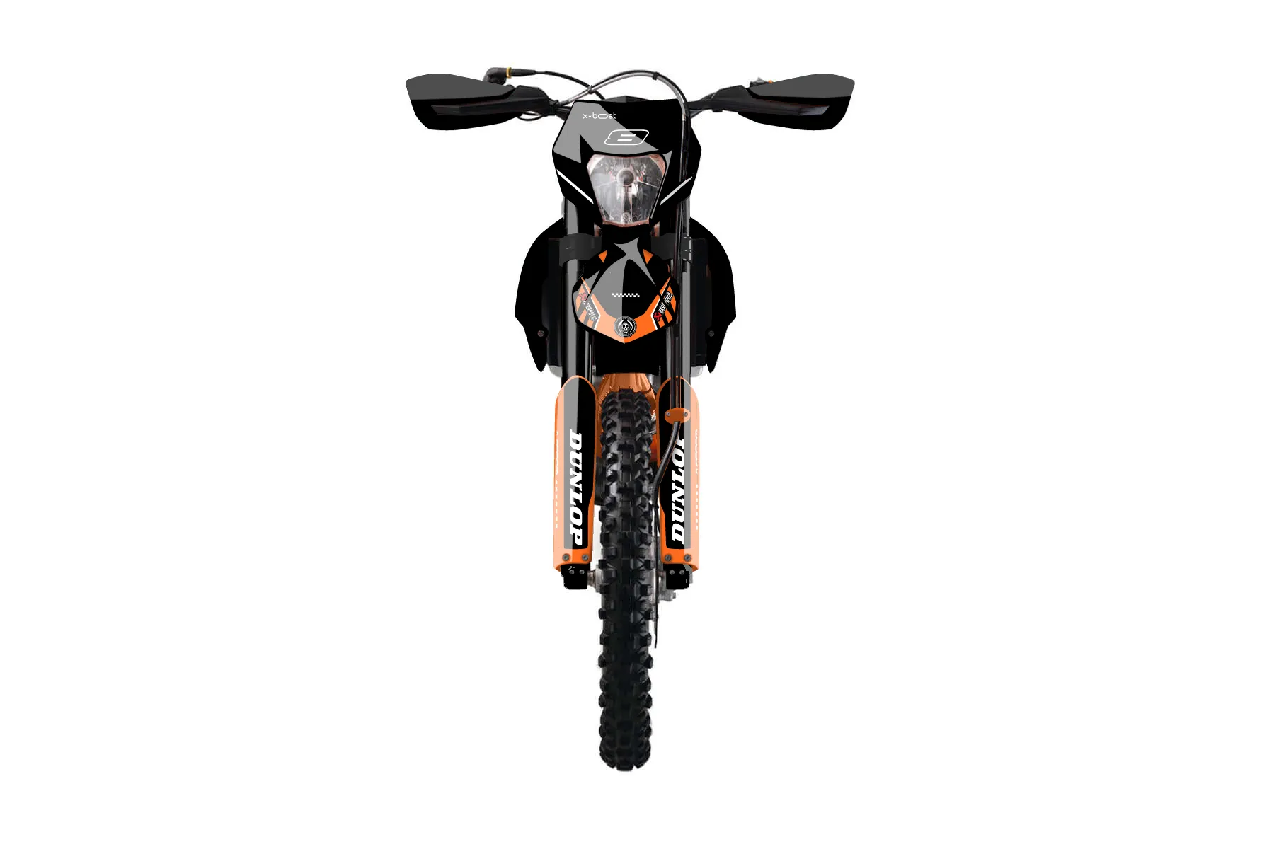 «Mental» — готовый комплект графики серии Maverick для KTM Enduro Graphic Kit KTM EXC-F 350 2016. В комплекте: графика на бак и боковые облицовки, крылья (переднее и заднее), передний щиток, номерные таблички, защита вилки. Материал: ПВХ-винил 80 мкр с холодной ламинацией 300 мкр, общая толщина 380 мкр; покрытие глянцевое или матовое на выбор. Устойчив к UV-излучению, воде, бензину и мойке высокого давления. Клей акриловый на сольвентной основе — постоянный, для гибких пластиков. На простых поверхностях монтируется без нагрева; для сложных изгибов рекомендуем фен. Этот пресет можно заказать как есть или взять за основу в конструкторе: поменять цвета, добавить стартовый номер и свой бренд. Производство — 3–5 рабочих дней, доставка по России СДЭКом или Почтой, по СНГ — курьерскими службами.
