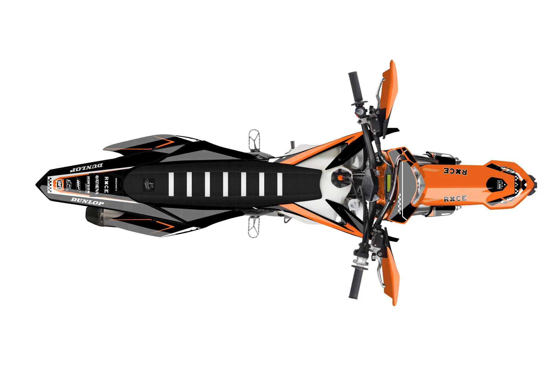 «4Time» — готовый комплект графики серии Staple для KTM Enduro Graphic Kit KTM EXC-F 350 2016. В комплекте: графика на бак и боковые облицовки, крылья (переднее и заднее), передний щиток, номерные таблички, защита вилки. Материал: ПВХ-винил 80 мкр с холодной ламинацией 300 мкр, общая толщина 380 мкр; покрытие глянцевое или матовое на выбор. Устойчив к UV-излучению, воде, бензину и мойке высокого давления. Клей акриловый на сольвентной основе — постоянный, для гибких пластиков. На простых поверхностях монтируется без нагрева; для сложных изгибов рекомендуем фен. Этот пресет можно заказать как есть или взять за основу в конструкторе: поменять цвета, добавить стартовый номер и свой бренд. Производство — 3–5 рабочих дней, доставка по России СДЭКом или Почтой, по СНГ — курьерскими службами.