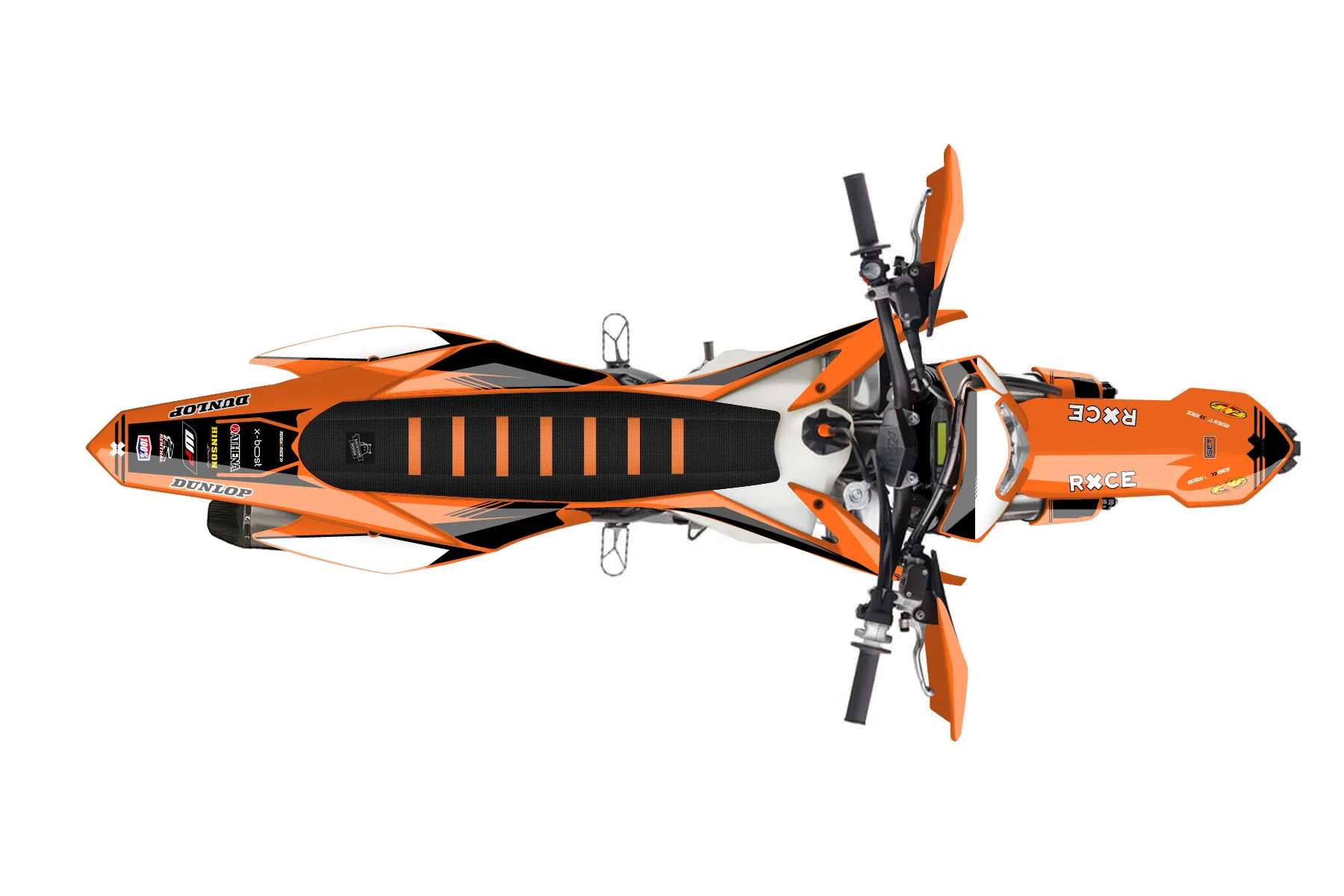 «Intact» — готовый комплект графики серии Untucked для KTM Enduro Graphic Kit KTM EXC-F 350 2016. В комплекте: графика на бак и боковые облицовки, крылья (переднее и заднее), передний щиток, номерные таблички, защита вилки. Материал: ПВХ-винил 80 мкр с холодной ламинацией 300 мкр, общая толщина 380 мкр; покрытие глянцевое или матовое на выбор. Устойчив к UV-излучению, воде, бензину и мойке высокого давления. Клей акриловый на сольвентной основе — постоянный, для гибких пластиков. На простых поверхностях монтируется без нагрева; для сложных изгибов рекомендуем фен. Этот пресет можно заказать как есть или взять за основу в конструкторе: поменять цвета, добавить стартовый номер и свой бренд. Производство — 3–5 рабочих дней, доставка по России СДЭКом или Почтой, по СНГ — курьерскими службами.