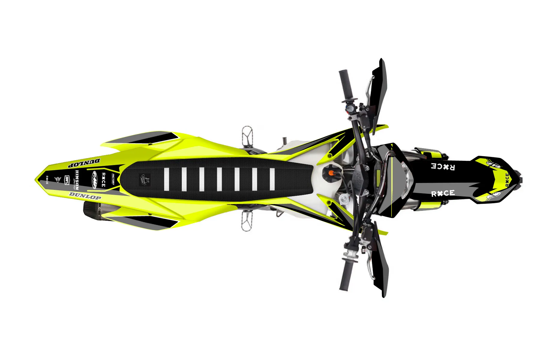 «Style Neon» — готовый комплект графики серии Untucked для KTM Enduro Graphic Kit KTM EXC-F 350 2016. В комплекте: графика на бак и боковые облицовки, крылья (переднее и заднее), передний щиток, номерные таблички, защита вилки. Материал: ПВХ-винил 80 мкр с холодной ламинацией 300 мкр, общая толщина 380 мкр; покрытие глянцевое или матовое на выбор. Устойчив к UV-излучению, воде, бензину и мойке высокого давления. Клей акриловый на сольвентной основе — постоянный, для гибких пластиков. На простых поверхностях монтируется без нагрева; для сложных изгибов рекомендуем фен. Этот пресет можно заказать как есть или взять за основу в конструкторе: поменять цвета, добавить стартовый номер и свой бренд. Производство — 3–5 рабочих дней, доставка по России СДЭКом или Почтой, по СНГ — курьерскими службами.