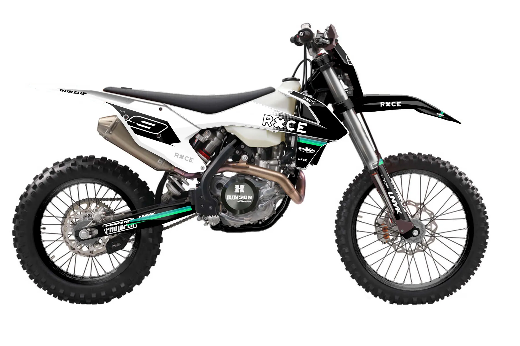 «Champ» — готовый комплект графики серии Maverick для KTM Enduro Graphic Kit KTM EXC-F 350 2017. В комплекте: графика на бак и боковые облицовки, крылья (переднее и заднее), передний щиток, номерные таблички, защита вилки. Материал: ПВХ-винил 80 мкр с холодной ламинацией 300 мкр, общая толщина 380 мкр; покрытие глянцевое или матовое на выбор. Устойчив к UV-излучению, воде, бензину и мойке высокого давления. Клей акриловый на сольвентной основе — постоянный, для гибких пластиков. На простых поверхностях монтируется без нагрева; для сложных изгибов рекомендуем фен. Этот пресет можно заказать как есть или взять за основу в конструкторе: поменять цвета, добавить стартовый номер и свой бренд. Производство — 3–5 рабочих дней, доставка по России СДЭКом или Почтой, по СНГ — курьерскими службами.