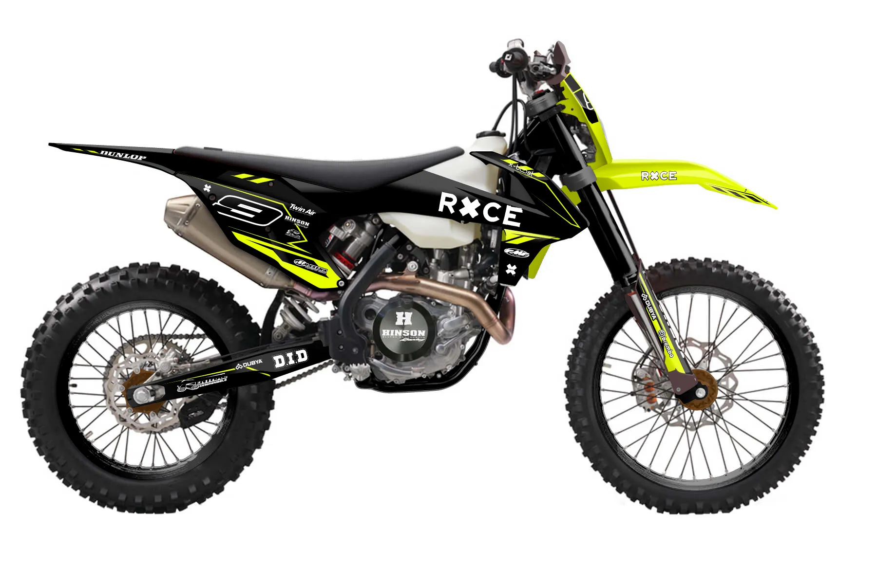 «Kitted Neon» — готовый комплект графики серии Maverick для KTM Enduro Graphic Kit KTM EXC-F 350 2017. В комплекте: графика на бак и боковые облицовки, крылья (переднее и заднее), передний щиток, номерные таблички, защита вилки. Материал: ПВХ-винил 80 мкр с холодной ламинацией 300 мкр, общая толщина 380 мкр; покрытие глянцевое или матовое на выбор. Устойчив к UV-излучению, воде, бензину и мойке высокого давления. Клей акриловый на сольвентной основе — постоянный, для гибких пластиков. На простых поверхностях монтируется без нагрева; для сложных изгибов рекомендуем фен. Этот пресет можно заказать как есть или взять за основу в конструкторе: поменять цвета, добавить стартовый номер и свой бренд. Производство — 3–5 рабочих дней, доставка по России СДЭКом или Почтой, по СНГ — курьерскими службами.