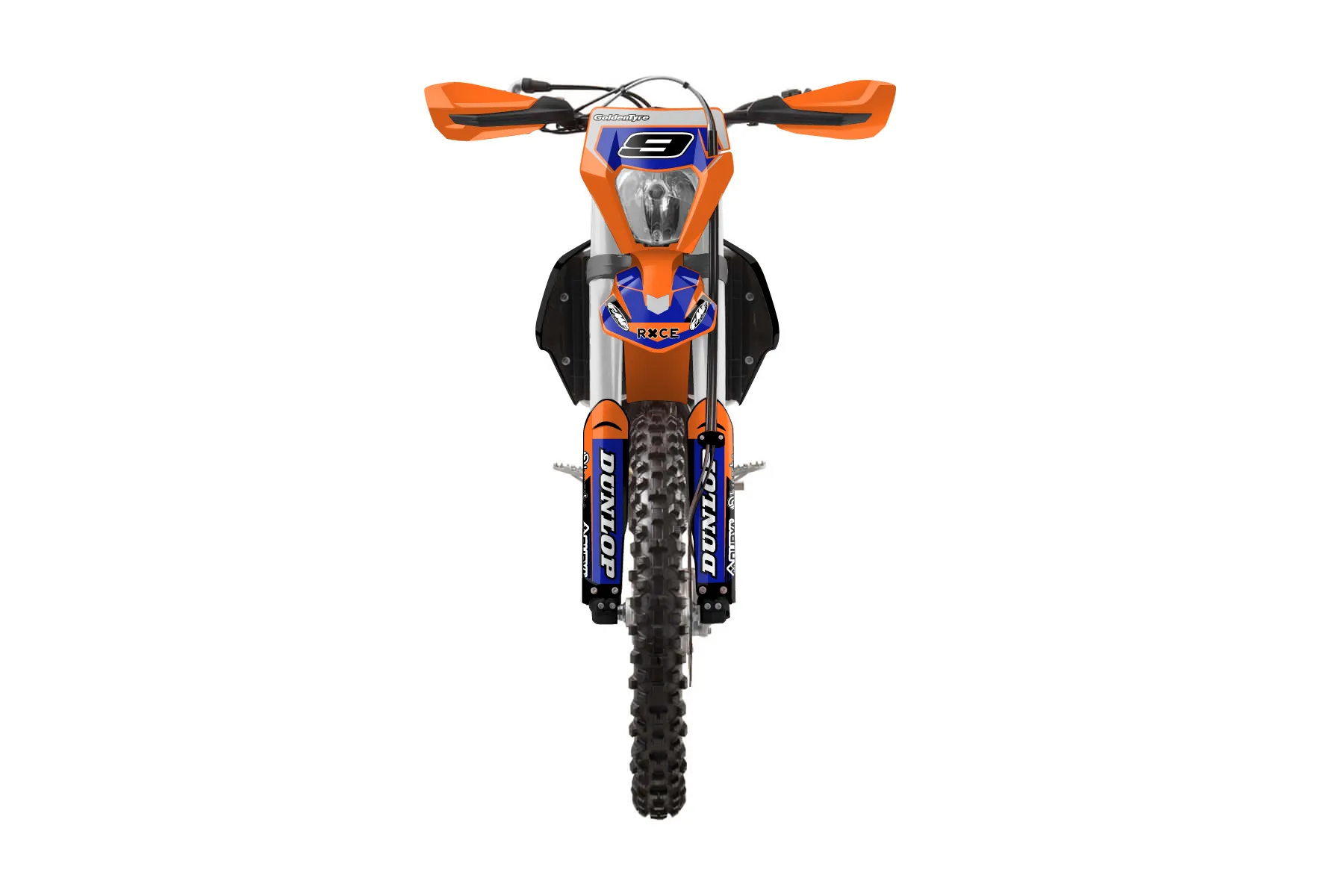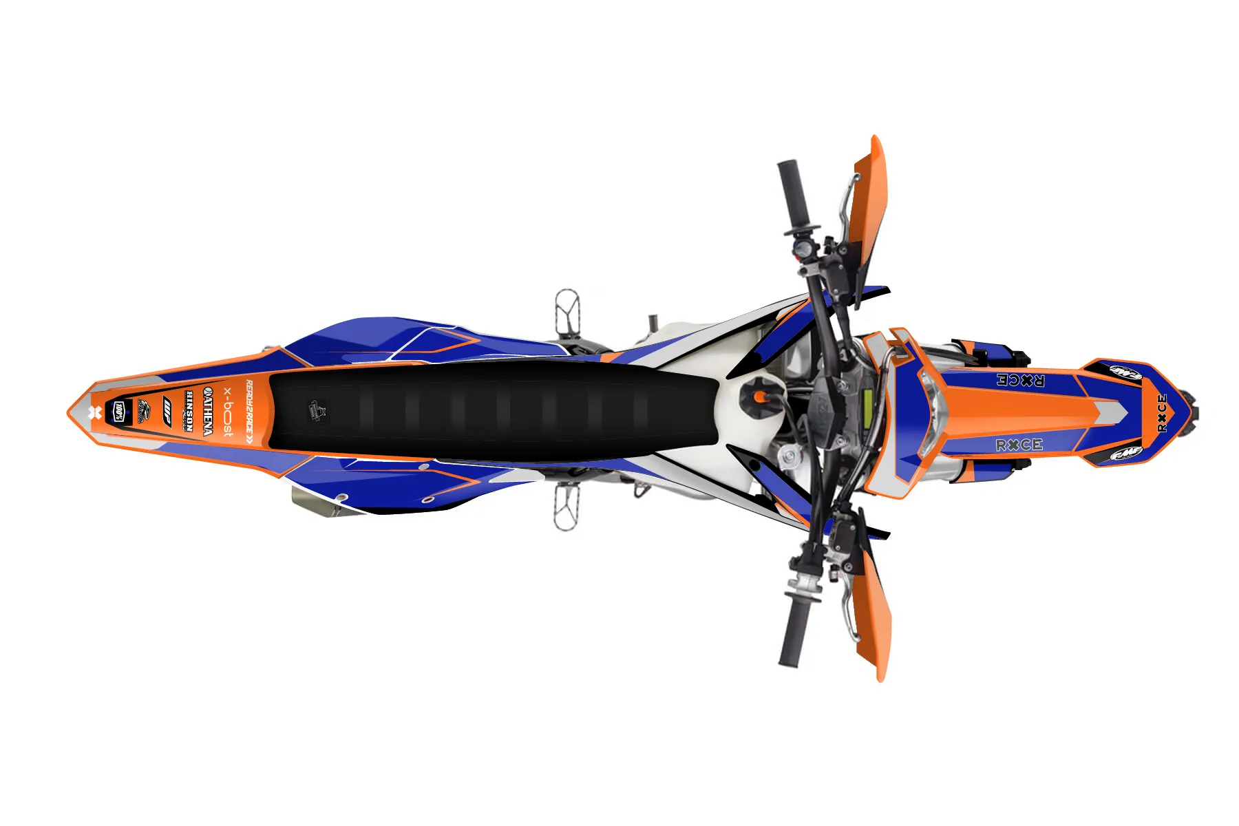 «KTM with silver 5-5-24» — готовый комплект графики серии Staple для KTM Enduro Graphic Kit KTM EXC-F 350 2017. В комплекте: графика на бак и боковые облицовки, крылья (переднее и заднее), передний щиток, номерные таблички, защита вилки. Материал: ПВХ-винил 80 мкр с холодной ламинацией 300 мкр, общая толщина 380 мкр; покрытие глянцевое или матовое на выбор. Устойчив к UV-излучению, воде, бензину и мойке высокого давления. Клей акриловый на сольвентной основе — постоянный, для гибких пластиков. На простых поверхностях монтируется без нагрева; для сложных изгибов рекомендуем фен. Этот пресет можно заказать как есть или взять за основу в конструкторе: поменять цвета, добавить стартовый номер и свой бренд. Производство — 3–5 рабочих дней, доставка по России СДЭКом или Почтой, по СНГ — курьерскими службами.