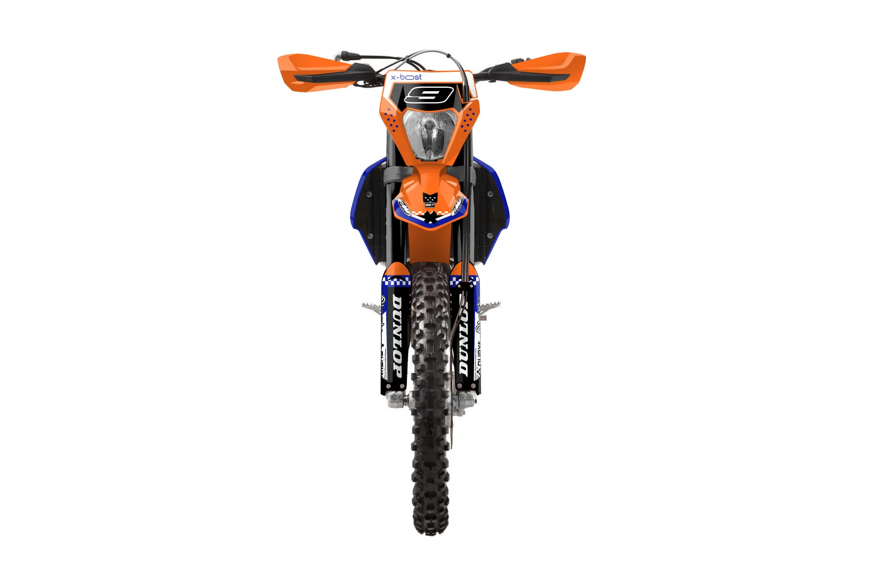 «New Era» — готовый комплект графики серии Staple для KTM Enduro Graphic Kit KTM EXC-F 350 2017. В комплекте: графика на бак и боковые облицовки, крылья (переднее и заднее), передний щиток, номерные таблички, защита вилки. Материал: ПВХ-винил 80 мкр с холодной ламинацией 300 мкр, общая толщина 380 мкр; покрытие глянцевое или матовое на выбор. Устойчив к UV-излучению, воде, бензину и мойке высокого давления. Клей акриловый на сольвентной основе — постоянный, для гибких пластиков. На простых поверхностях монтируется без нагрева; для сложных изгибов рекомендуем фен. Этот пресет можно заказать как есть или взять за основу в конструкторе: поменять цвета, добавить стартовый номер и свой бренд. Производство — 3–5 рабочих дней, доставка по России СДЭКом или Почтой, по СНГ — курьерскими службами.