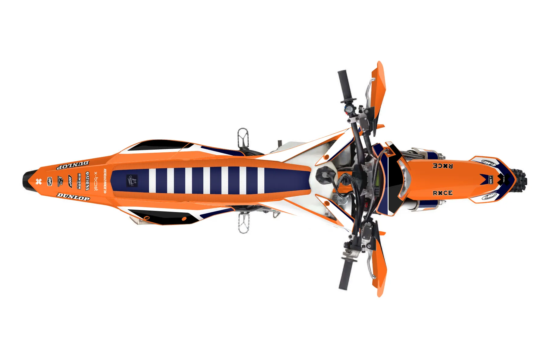 «Chill» — готовый комплект графики серии Flow для KTM Enduro Graphic Kit KTM EXC-F 350 2020. В комплекте: графика на бак и боковые облицовки, крылья (переднее и заднее), передний щиток, номерные таблички, защита вилки. Материал: ПВХ-винил 80 мкр с холодной ламинацией 300 мкр, общая толщина 380 мкр; покрытие глянцевое или матовое на выбор. Устойчив к UV-излучению, воде, бензину и мойке высокого давления. Клей акриловый на сольвентной основе — постоянный, для гибких пластиков. На простых поверхностях монтируется без нагрева; для сложных изгибов рекомендуем фен. Этот пресет можно заказать как есть или взять за основу в конструкторе: поменять цвета, добавить стартовый номер и свой бренд. Производство — 3–5 рабочих дней, доставка по России СДЭКом или Почтой, по СНГ — курьерскими службами.