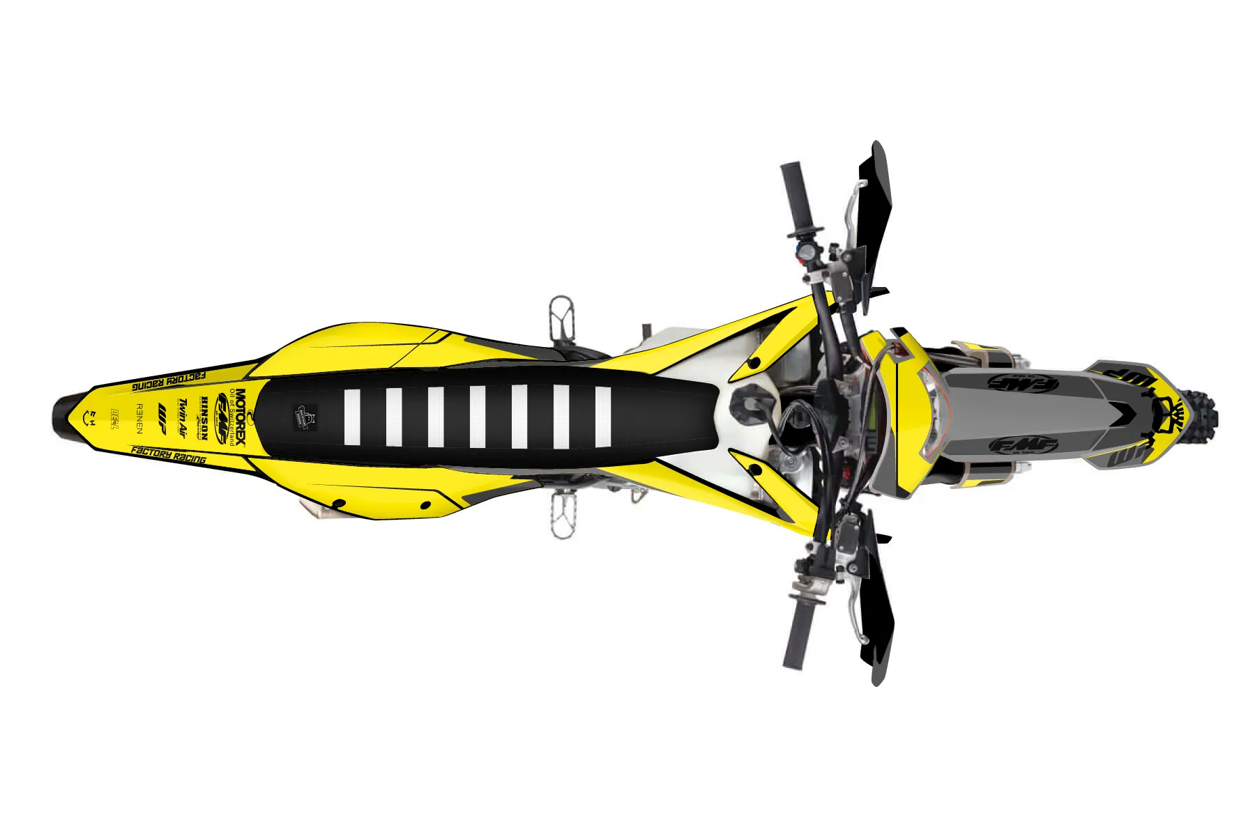«drey yellow» — готовый комплект графики серии Flow для KTM Enduro Graphic Kit KTM EXC-F 350 2020. В комплекте: графика на бак и боковые облицовки, крылья (переднее и заднее), передний щиток, номерные таблички, защита вилки. Материал: ПВХ-винил 80 мкр с холодной ламинацией 300 мкр, общая толщина 380 мкр; покрытие глянцевое или матовое на выбор. Устойчив к UV-излучению, воде, бензину и мойке высокого давления. Клей акриловый на сольвентной основе — постоянный, для гибких пластиков. На простых поверхностях монтируется без нагрева; для сложных изгибов рекомендуем фен. Этот пресет можно заказать как есть или взять за основу в конструкторе: поменять цвета, добавить стартовый номер и свой бренд. Производство — 3–5 рабочих дней, доставка по России СДЭКом или Почтой, по СНГ — курьерскими службами.