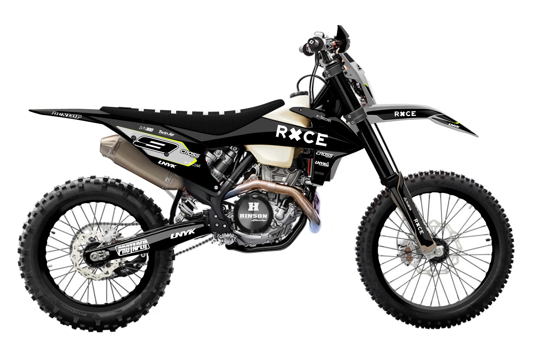 «Fluo» — готовый комплект графики серии Flow для KTM Enduro Graphic Kit KTM EXC-F 350 2020. В комплекте: графика на бак и боковые облицовки, крылья (переднее и заднее), передний щиток, номерные таблички, защита вилки. Материал: ПВХ-винил 80 мкр с холодной ламинацией 300 мкр, общая толщина 380 мкр; покрытие глянцевое или матовое на выбор. Устойчив к UV-излучению, воде, бензину и мойке высокого давления. Клей акриловый на сольвентной основе — постоянный, для гибких пластиков. На простых поверхностях монтируется без нагрева; для сложных изгибов рекомендуем фен. Этот пресет можно заказать как есть или взять за основу в конструкторе: поменять цвета, добавить стартовый номер и свой бренд. Производство — 3–5 рабочих дней, доставка по России СДЭКом или Почтой, по СНГ — курьерскими службами.