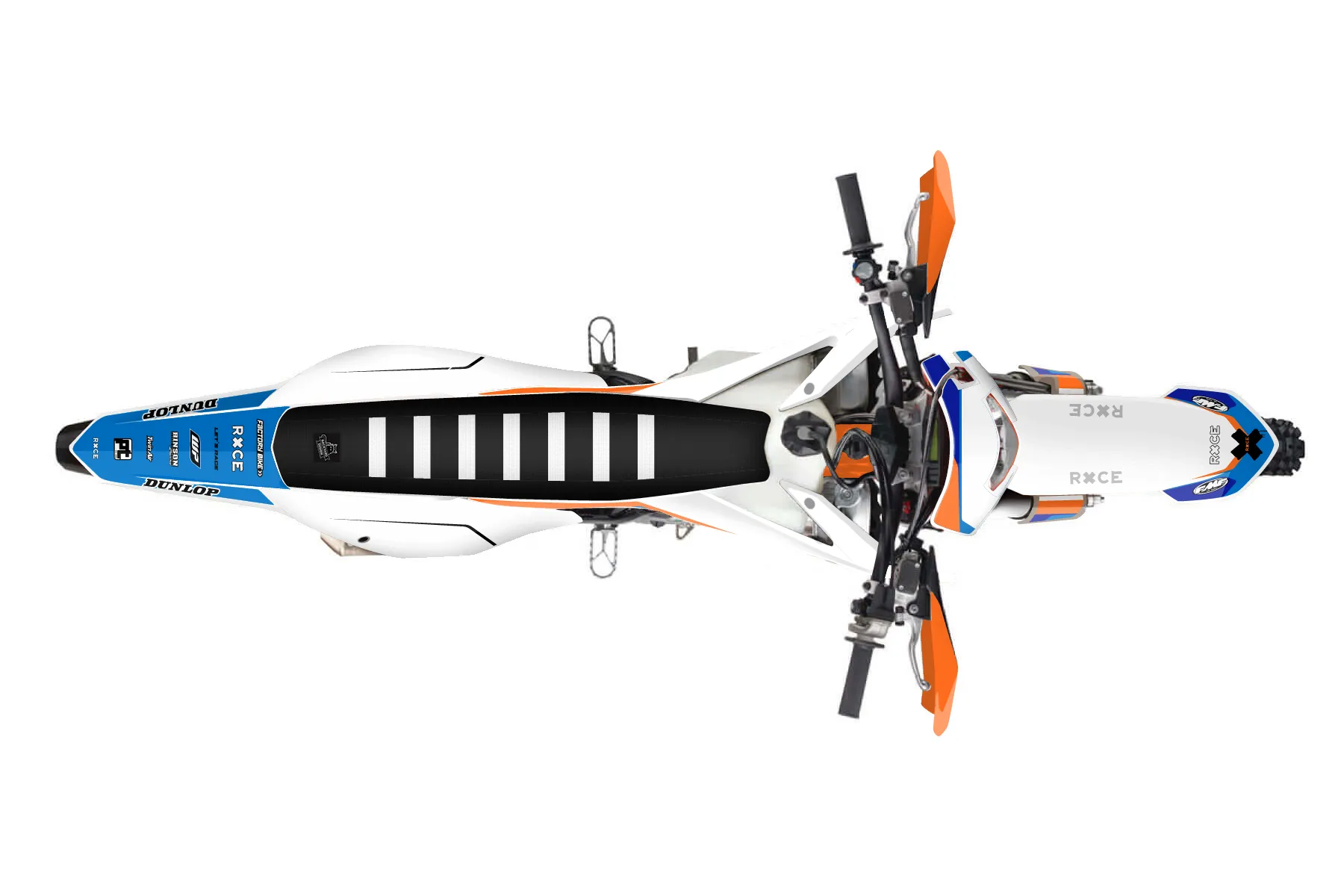«Oldschool» — готовый комплект графики серии Flow для KTM Enduro Graphic Kit KTM EXC-F 350 2020. В комплекте: графика на бак и боковые облицовки, крылья (переднее и заднее), передний щиток, номерные таблички, защита вилки. Материал: ПВХ-винил 80 мкр с холодной ламинацией 300 мкр, общая толщина 380 мкр; покрытие глянцевое или матовое на выбор. Устойчив к UV-излучению, воде, бензину и мойке высокого давления. Клей акриловый на сольвентной основе — постоянный, для гибких пластиков. На простых поверхностях монтируется без нагрева; для сложных изгибов рекомендуем фен. Этот пресет можно заказать как есть или взять за основу в конструкторе: поменять цвета, добавить стартовый номер и свой бренд. Производство — 3–5 рабочих дней, доставка по России СДЭКом или Почтой, по СНГ — курьерскими службами.