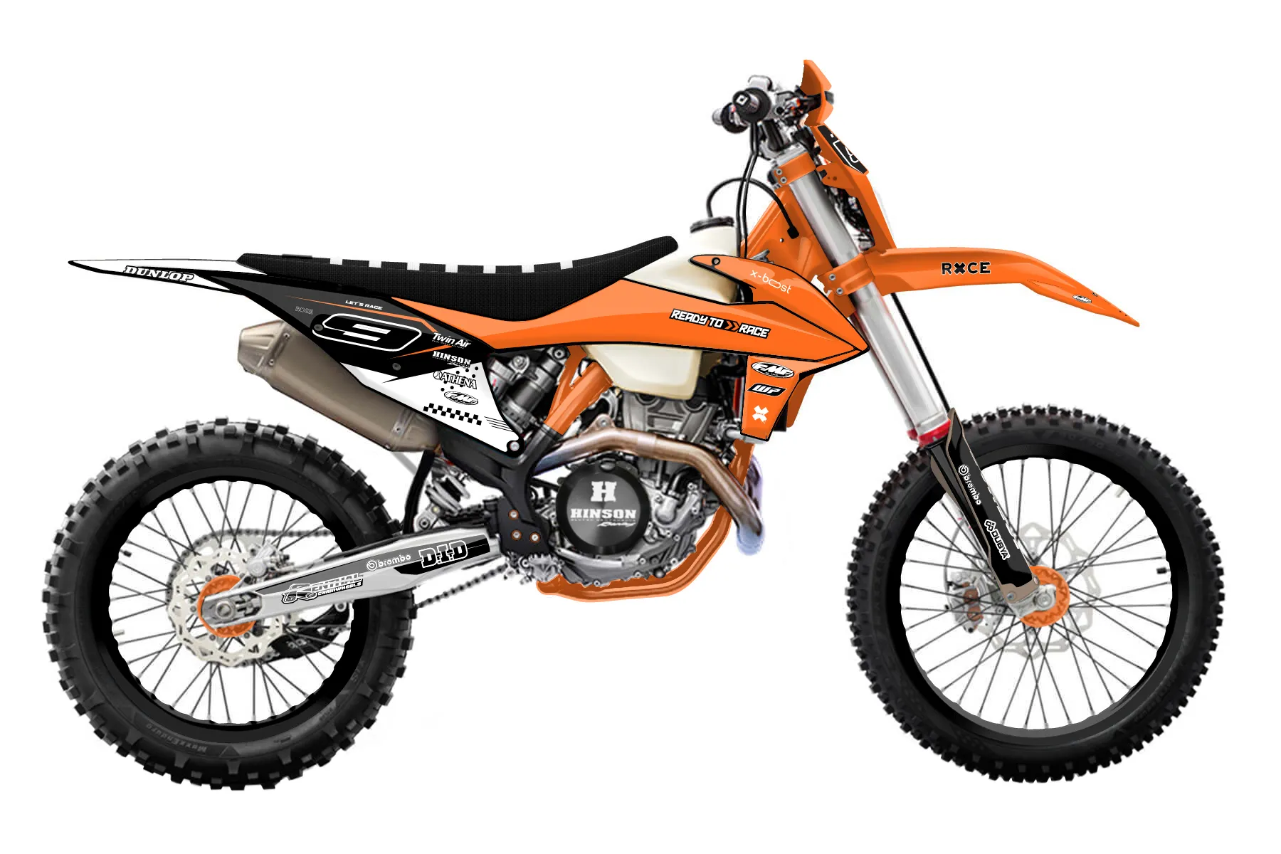 «4Time» — готовый комплект графики серии Staple для KTM Enduro Graphic Kit KTM EXC-F 350 2020. В комплекте: графика на бак и боковые облицовки, крылья (переднее и заднее), передний щиток, номерные таблички, защита вилки. Материал: ПВХ-винил 80 мкр с холодной ламинацией 300 мкр, общая толщина 380 мкр; покрытие глянцевое или матовое на выбор. Устойчив к UV-излучению, воде, бензину и мойке высокого давления. Клей акриловый на сольвентной основе — постоянный, для гибких пластиков. На простых поверхностях монтируется без нагрева; для сложных изгибов рекомендуем фен. Этот пресет можно заказать как есть или взять за основу в конструкторе: поменять цвета, добавить стартовый номер и свой бренд. Производство — 3–5 рабочих дней, доставка по России СДЭКом или Почтой, по СНГ — курьерскими службами.