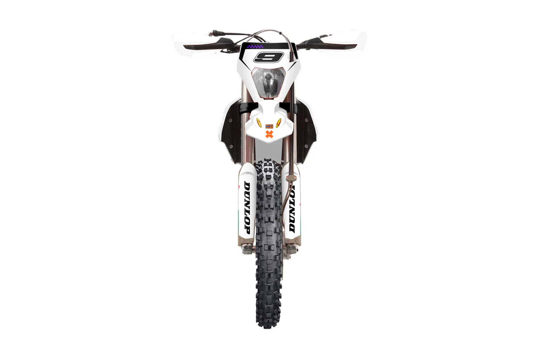 «bike 1» — готовый комплект графики серии Staple для KTM Enduro Graphic Kit KTM EXC-F 350 2020. В комплекте: графика на бак и боковые облицовки, крылья (переднее и заднее), передний щиток, номерные таблички, защита вилки. Материал: ПВХ-винил 80 мкр с холодной ламинацией 300 мкр, общая толщина 380 мкр; покрытие глянцевое или матовое на выбор. Устойчив к UV-излучению, воде, бензину и мойке высокого давления. Клей акриловый на сольвентной основе — постоянный, для гибких пластиков. На простых поверхностях монтируется без нагрева; для сложных изгибов рекомендуем фен. Этот пресет можно заказать как есть или взять за основу в конструкторе: поменять цвета, добавить стартовый номер и свой бренд. Производство — 3–5 рабочих дней, доставка по России СДЭКом или Почтой, по СНГ — курьерскими службами.