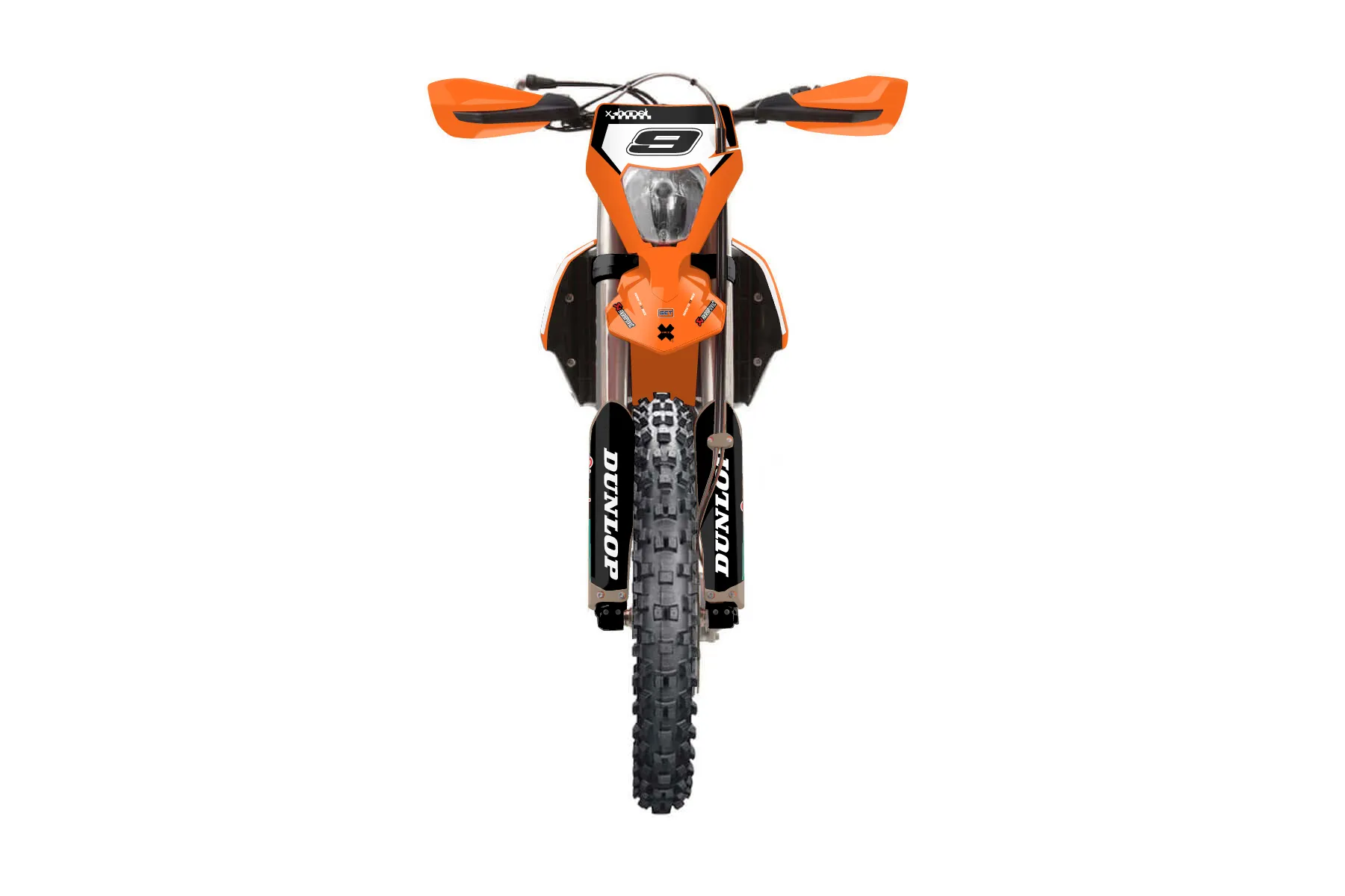 «Volt» — готовый комплект графики серии Staple для KTM Enduro Graphic Kit KTM EXC-F 350 2020. В комплекте: графика на бак и боковые облицовки, крылья (переднее и заднее), передний щиток, номерные таблички, защита вилки. Материал: ПВХ-винил 80 мкр с холодной ламинацией 300 мкр, общая толщина 380 мкр; покрытие глянцевое или матовое на выбор. Устойчив к UV-излучению, воде, бензину и мойке высокого давления. Клей акриловый на сольвентной основе — постоянный, для гибких пластиков. На простых поверхностях монтируется без нагрева; для сложных изгибов рекомендуем фен. Этот пресет можно заказать как есть или взять за основу в конструкторе: поменять цвета, добавить стартовый номер и свой бренд. Производство — 3–5 рабочих дней, доставка по России СДЭКом или Почтой, по СНГ — курьерскими службами.