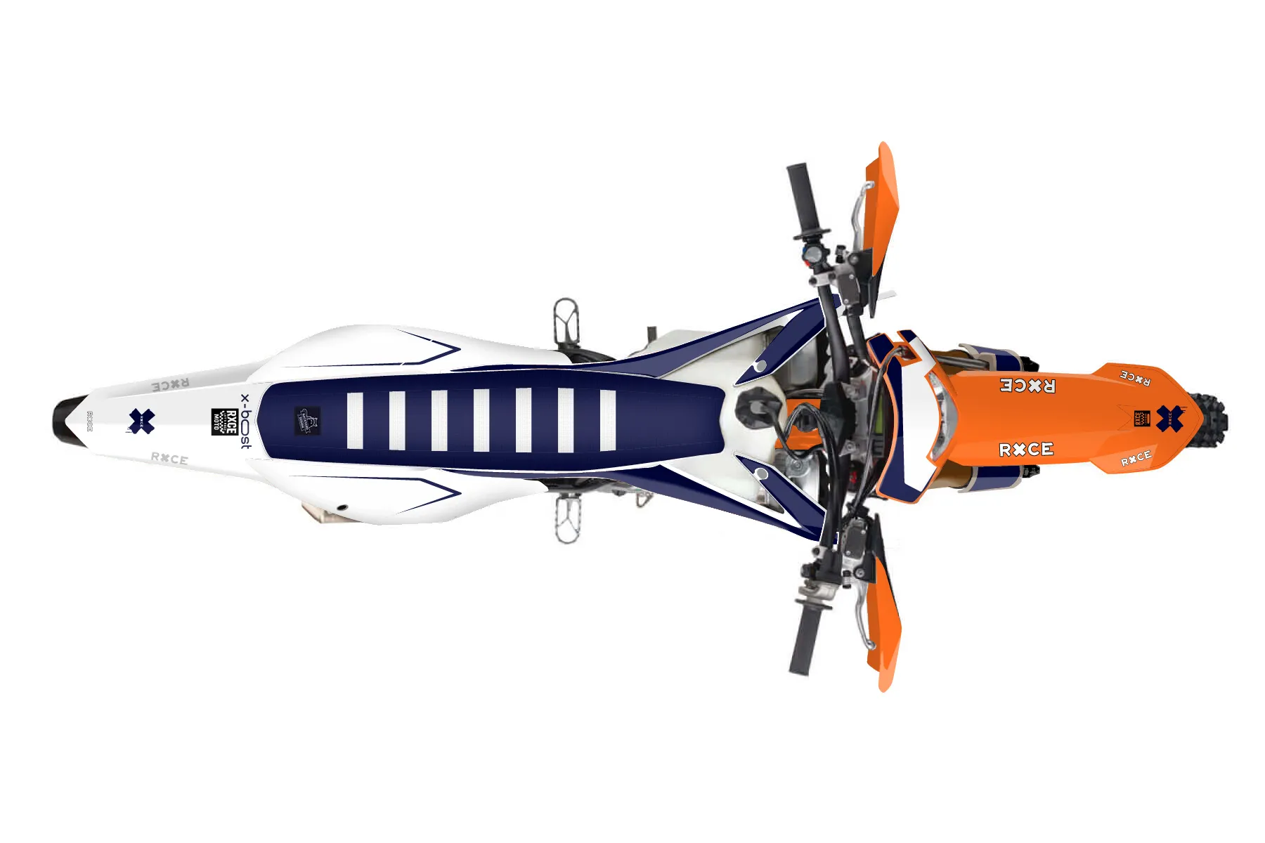 «Wrapper» — готовый комплект графики серии Staple для KTM Enduro Graphic Kit KTM EXC-F 350 2020. В комплекте: графика на бак и боковые облицовки, крылья (переднее и заднее), передний щиток, номерные таблички, защита вилки. Материал: ПВХ-винил 80 мкр с холодной ламинацией 300 мкр, общая толщина 380 мкр; покрытие глянцевое или матовое на выбор. Устойчив к UV-излучению, воде, бензину и мойке высокого давления. Клей акриловый на сольвентной основе — постоянный, для гибких пластиков. На простых поверхностях монтируется без нагрева; для сложных изгибов рекомендуем фен. Этот пресет можно заказать как есть или взять за основу в конструкторе: поменять цвета, добавить стартовый номер и свой бренд. Производство — 3–5 рабочих дней, доставка по России СДЭКом или Почтой, по СНГ — курьерскими службами.