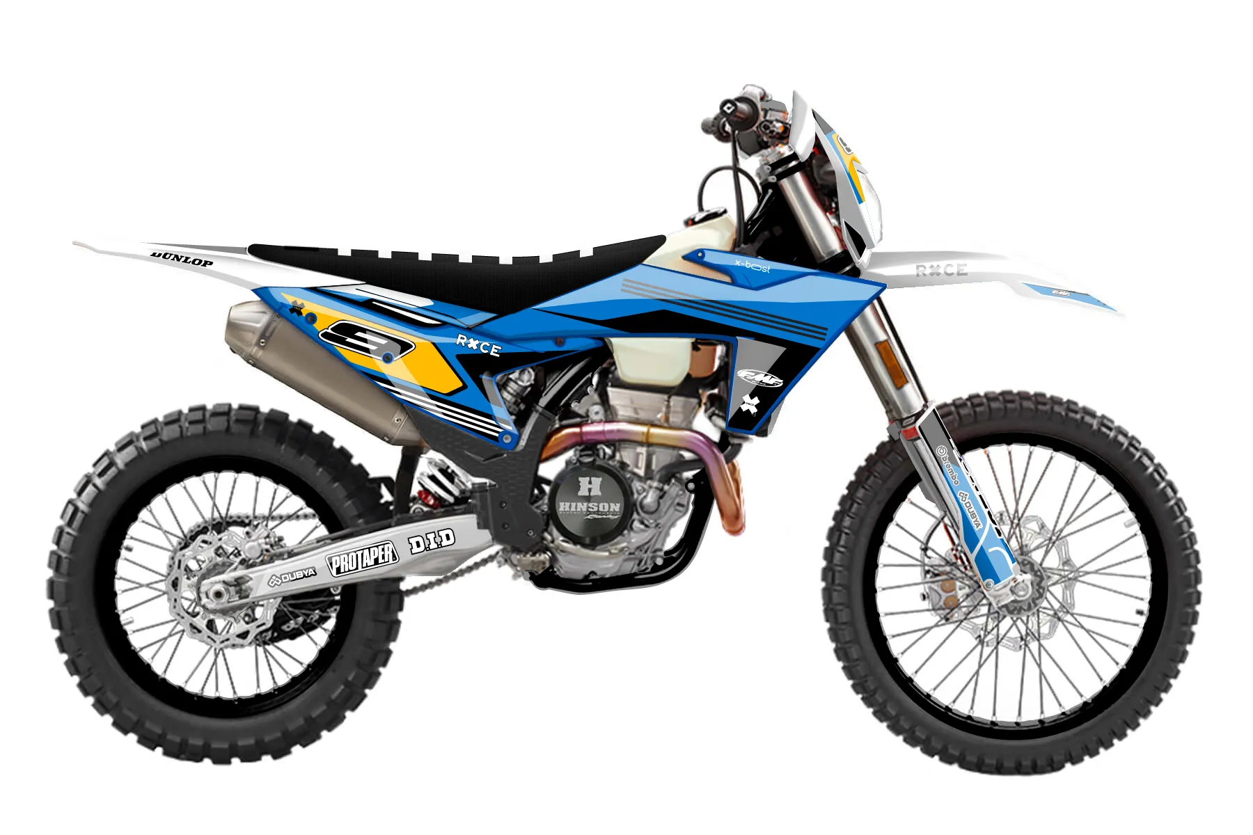 «All-Star» — готовый комплект графики серии Flow для KTM Enduro Graphic Kit KTM EXC-F 350 2024. В комплекте: графика на бак и боковые облицовки, крылья (переднее и заднее), передний щиток, номерные таблички, защита вилки. Материал: ПВХ-винил 80 мкр с холодной ламинацией 300 мкр, общая толщина 380 мкр; покрытие глянцевое или матовое на выбор. Устойчив к UV-излучению, воде, бензину и мойке высокого давления. Клей акриловый на сольвентной основе — постоянный, для гибких пластиков. На простых поверхностях монтируется без нагрева; для сложных изгибов рекомендуем фен. Этот пресет можно заказать как есть или взять за основу в конструкторе: поменять цвета, добавить стартовый номер и свой бренд. Производство — 3–5 рабочих дней, доставка по России СДЭКом или Почтой, по СНГ — курьерскими службами.