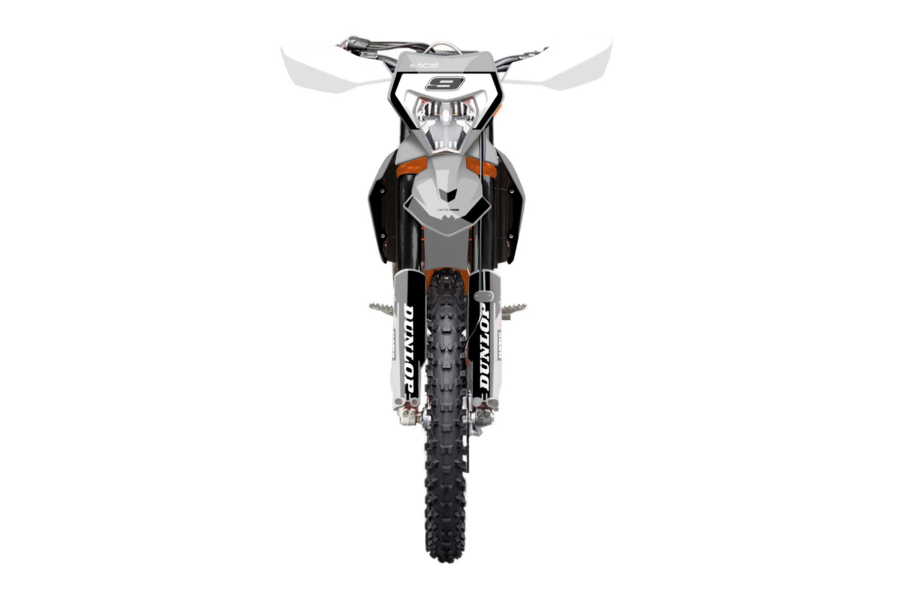 «Concepts» — готовый комплект графики серии Flow для KTM Enduro Graphic Kit KTM EXC-F 350 2024. В комплекте: графика на бак и боковые облицовки, крылья (переднее и заднее), передний щиток, номерные таблички, защита вилки. Материал: ПВХ-винил 80 мкр с холодной ламинацией 300 мкр, общая толщина 380 мкр; покрытие глянцевое или матовое на выбор. Устойчив к UV-излучению, воде, бензину и мойке высокого давления. Клей акриловый на сольвентной основе — постоянный, для гибких пластиков. На простых поверхностях монтируется без нагрева; для сложных изгибов рекомендуем фен. Этот пресет можно заказать как есть или взять за основу в конструкторе: поменять цвета, добавить стартовый номер и свой бренд. Производство — 3–5 рабочих дней, доставка по России СДЭКом или Почтой, по СНГ — курьерскими службами.
