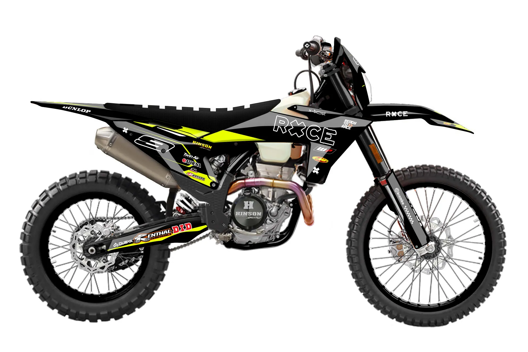 «Form» — готовый комплект графики серии Flow для KTM Enduro Graphic Kit KTM EXC-F 350 2024. В комплекте: графика на бак и боковые облицовки, крылья (переднее и заднее), передний щиток, номерные таблички, защита вилки. Материал: ПВХ-винил 80 мкр с холодной ламинацией 300 мкр, общая толщина 380 мкр; покрытие глянцевое или матовое на выбор. Устойчив к UV-излучению, воде, бензину и мойке высокого давления. Клей акриловый на сольвентной основе — постоянный, для гибких пластиков. На простых поверхностях монтируется без нагрева; для сложных изгибов рекомендуем фен. Этот пресет можно заказать как есть или взять за основу в конструкторе: поменять цвета, добавить стартовый номер и свой бренд. Производство — 3–5 рабочих дней, доставка по России СДЭКом или Почтой, по СНГ — курьерскими службами.