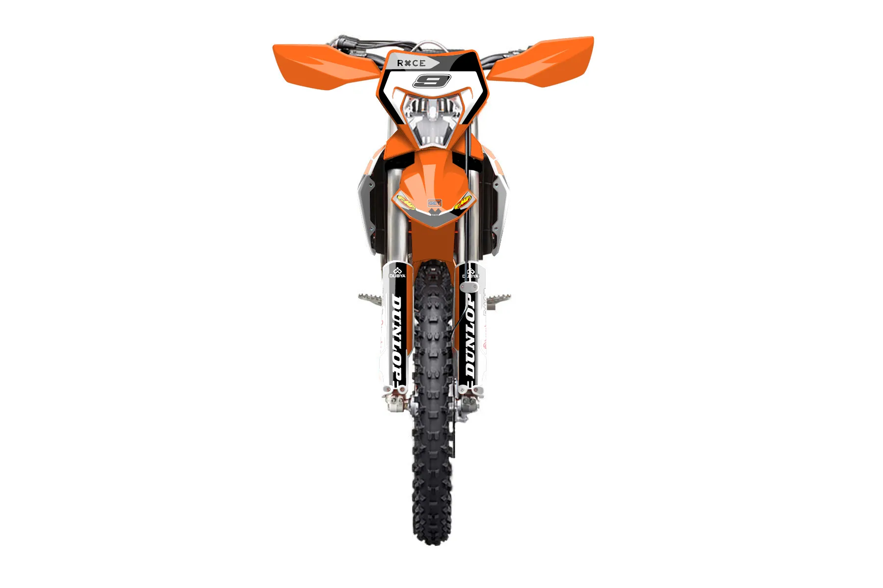 «Whip» — готовый комплект графики серии Flow для KTM Enduro Graphic Kit KTM EXC-F 350 2024. В комплекте: графика на бак и боковые облицовки, крылья (переднее и заднее), передний щиток, номерные таблички, защита вилки. Материал: ПВХ-винил 80 мкр с холодной ламинацией 300 мкр, общая толщина 380 мкр; покрытие глянцевое или матовое на выбор. Устойчив к UV-излучению, воде, бензину и мойке высокого давления. Клей акриловый на сольвентной основе — постоянный, для гибких пластиков. На простых поверхностях монтируется без нагрева; для сложных изгибов рекомендуем фен. Этот пресет можно заказать как есть или взять за основу в конструкторе: поменять цвета, добавить стартовый номер и свой бренд. Производство — 3–5 рабочих дней, доставка по России СДЭКом или Почтой, по СНГ — курьерскими службами.