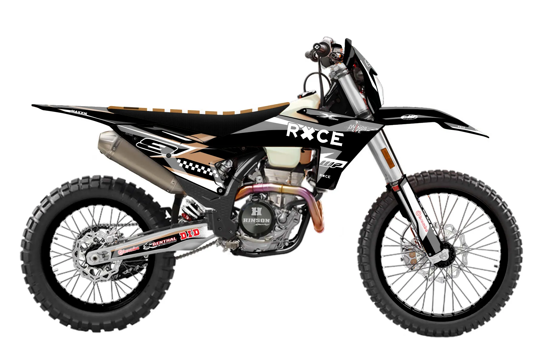 «cheetaaa» — готовый комплект графики серии Fusion для KTM Enduro Graphic Kit KTM EXC-F 350 2024. В комплекте: графика на бак и боковые облицовки, крылья (переднее и заднее), передний щиток, номерные таблички, защита вилки. Материал: ПВХ-винил 80 мкр с холодной ламинацией 300 мкр, общая толщина 380 мкр; покрытие глянцевое или матовое на выбор. Устойчив к UV-излучению, воде, бензину и мойке высокого давления. Клей акриловый на сольвентной основе — постоянный, для гибких пластиков. На простых поверхностях монтируется без нагрева; для сложных изгибов рекомендуем фен. Этот пресет можно заказать как есть или взять за основу в конструкторе: поменять цвета, добавить стартовый номер и свой бренд. Производство — 3–5 рабочих дней, доставка по России СДЭКом или Почтой, по СНГ — курьерскими службами.