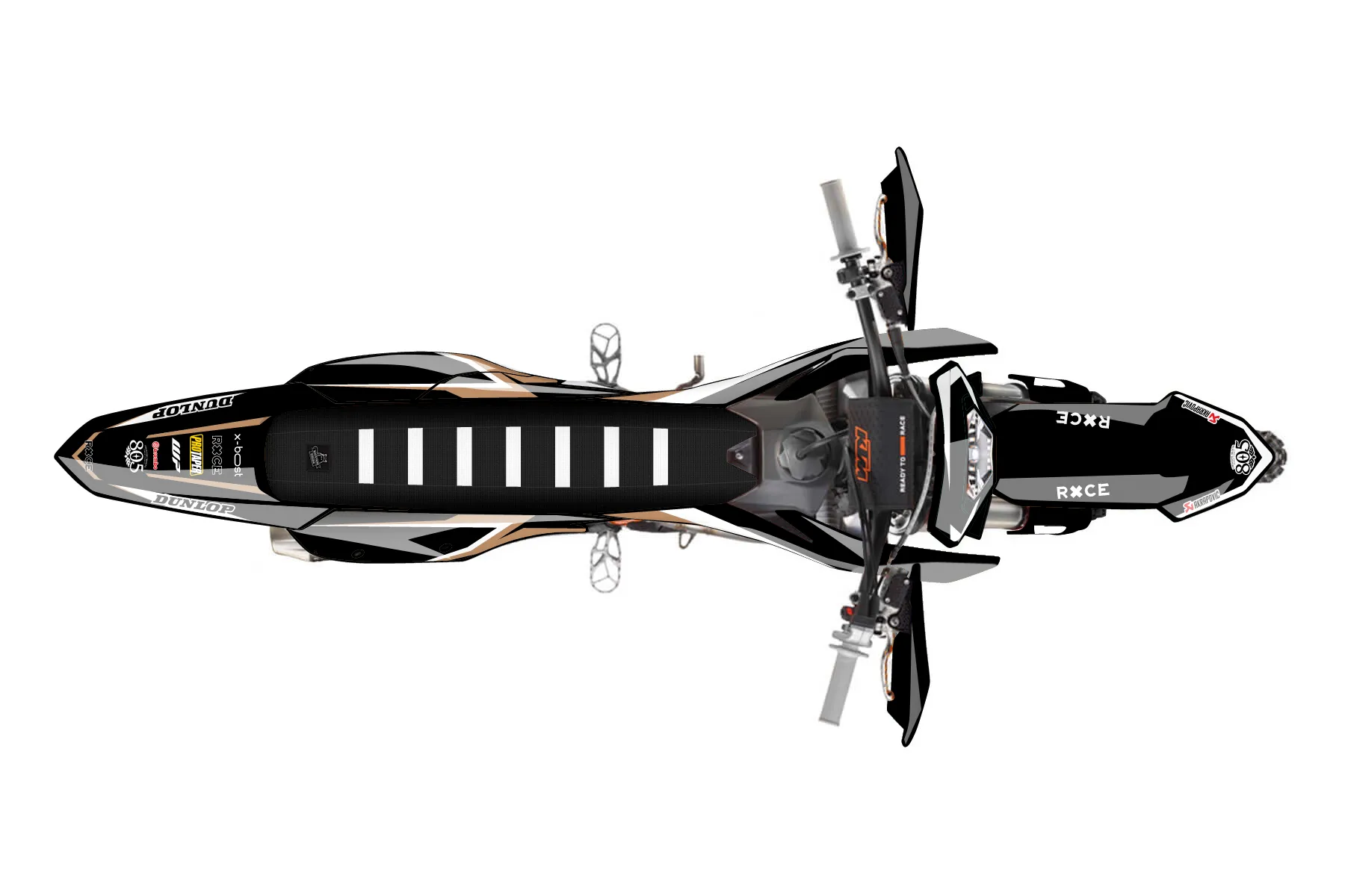 «Secure» — готовый комплект графики серии Fusion для KTM Enduro Graphic Kit KTM EXC-F 350 2024. В комплекте: графика на бак и боковые облицовки, крылья (переднее и заднее), передний щиток, номерные таблички, защита вилки. Материал: ПВХ-винил 80 мкр с холодной ламинацией 300 мкр, общая толщина 380 мкр; покрытие глянцевое или матовое на выбор. Устойчив к UV-излучению, воде, бензину и мойке высокого давления. Клей акриловый на сольвентной основе — постоянный, для гибких пластиков. На простых поверхностях монтируется без нагрева; для сложных изгибов рекомендуем фен. Этот пресет можно заказать как есть или взять за основу в конструкторе: поменять цвета, добавить стартовый номер и свой бренд. Производство — 3–5 рабочих дней, доставка по России СДЭКом или Почтой, по СНГ — курьерскими службами.