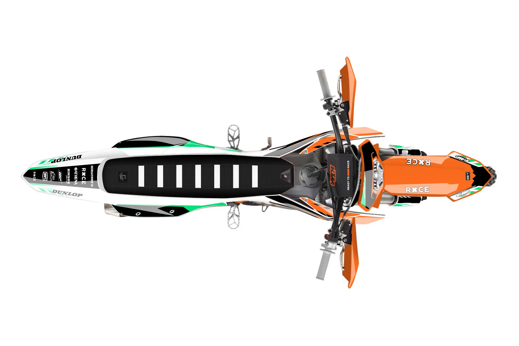 «Future» — готовый комплект графики серии Maverick для KTM Enduro Graphic Kit KTM EXC-F 350 2024. В комплекте: графика на бак и боковые облицовки, крылья (переднее и заднее), передний щиток, номерные таблички, защита вилки. Материал: ПВХ-винил 80 мкр с холодной ламинацией 300 мкр, общая толщина 380 мкр; покрытие глянцевое или матовое на выбор. Устойчив к UV-излучению, воде, бензину и мойке высокого давления. Клей акриловый на сольвентной основе — постоянный, для гибких пластиков. На простых поверхностях монтируется без нагрева; для сложных изгибов рекомендуем фен. Этот пресет можно заказать как есть или взять за основу в конструкторе: поменять цвета, добавить стартовый номер и свой бренд. Производство — 3–5 рабочих дней, доставка по России СДЭКом или Почтой, по СНГ — курьерскими службами.