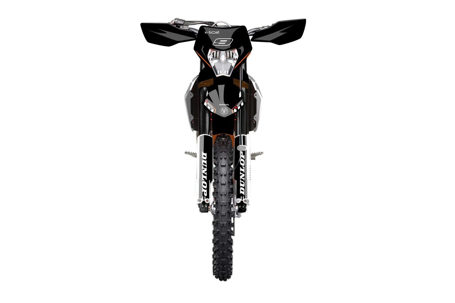 «Sick» — готовый комплект графики серии Maverick для KTM Enduro Graphic Kit KTM EXC-F 350 2024. В комплекте: графика на бак и боковые облицовки, крылья (переднее и заднее), передний щиток, номерные таблички, защита вилки. Материал: ПВХ-винил 80 мкр с холодной ламинацией 300 мкр, общая толщина 380 мкр; покрытие глянцевое или матовое на выбор. Устойчив к UV-излучению, воде, бензину и мойке высокого давления. Клей акриловый на сольвентной основе — постоянный, для гибких пластиков. На простых поверхностях монтируется без нагрева; для сложных изгибов рекомендуем фен. Этот пресет можно заказать как есть или взять за основу в конструкторе: поменять цвета, добавить стартовый номер и свой бренд. Производство — 3–5 рабочих дней, доставка по России СДЭКом или Почтой, по СНГ — курьерскими службами.