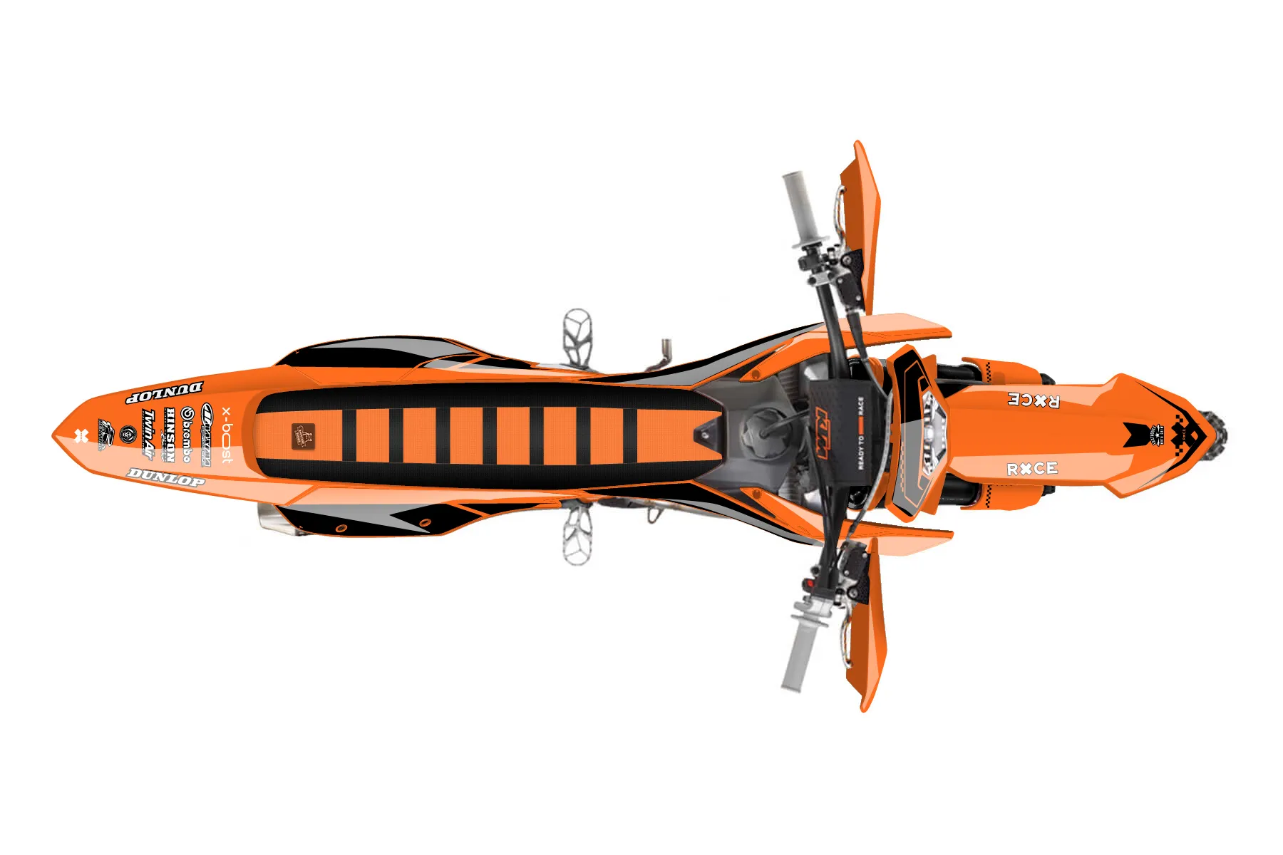 «Direction» — готовый комплект графики серии Staple для KTM Enduro Graphic Kit KTM EXC-F 350 2024. В комплекте: графика на бак и боковые облицовки, крылья (переднее и заднее), передний щиток, номерные таблички, защита вилки. Материал: ПВХ-винил 80 мкр с холодной ламинацией 300 мкр, общая толщина 380 мкр; покрытие глянцевое или матовое на выбор. Устойчив к UV-излучению, воде, бензину и мойке высокого давления. Клей акриловый на сольвентной основе — постоянный, для гибких пластиков. На простых поверхностях монтируется без нагрева; для сложных изгибов рекомендуем фен. Этот пресет можно заказать как есть или взять за основу в конструкторе: поменять цвета, добавить стартовый номер и свой бренд. Производство — 3–5 рабочих дней, доставка по России СДЭКом или Почтой, по СНГ — курьерскими службами.