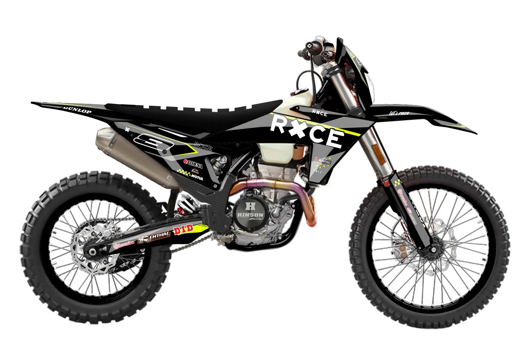 «Refuse Neon» — готовый комплект графики серии Staple для KTM Enduro Graphic Kit KTM EXC-F 350 2024. В комплекте: графика на бак и боковые облицовки, крылья (переднее и заднее), передний щиток, номерные таблички, защита вилки. Материал: ПВХ-винил 80 мкр с холодной ламинацией 300 мкр, общая толщина 380 мкр; покрытие глянцевое или матовое на выбор. Устойчив к UV-излучению, воде, бензину и мойке высокого давления. Клей акриловый на сольвентной основе — постоянный, для гибких пластиков. На простых поверхностях монтируется без нагрева; для сложных изгибов рекомендуем фен. Этот пресет можно заказать как есть или взять за основу в конструкторе: поменять цвета, добавить стартовый номер и свой бренд. Производство — 3–5 рабочих дней, доставка по России СДЭКом или Почтой, по СНГ — курьерскими службами.