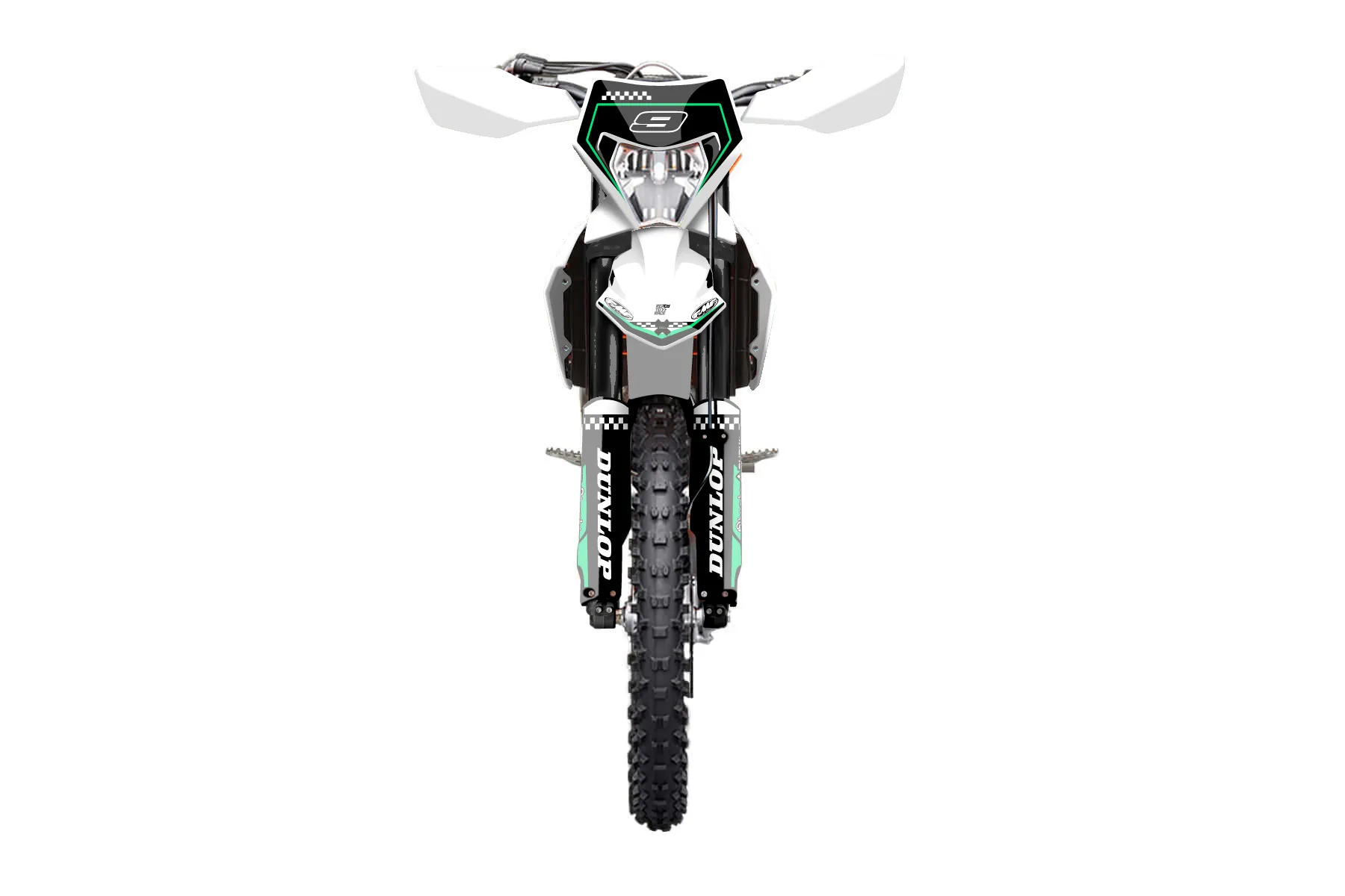 «Supervision» — готовый комплект графики серии Staple для KTM Enduro Graphic Kit KTM EXC-F 350 2024. В комплекте: графика на бак и боковые облицовки, крылья (переднее и заднее), передний щиток, номерные таблички, защита вилки. Материал: ПВХ-винил 80 мкр с холодной ламинацией 300 мкр, общая толщина 380 мкр; покрытие глянцевое или матовое на выбор. Устойчив к UV-излучению, воде, бензину и мойке высокого давления. Клей акриловый на сольвентной основе — постоянный, для гибких пластиков. На простых поверхностях монтируется без нагрева; для сложных изгибов рекомендуем фен. Этот пресет можно заказать как есть или взять за основу в конструкторе: поменять цвета, добавить стартовый номер и свой бренд. Производство — 3–5 рабочих дней, доставка по России СДЭКом или Почтой, по СНГ — курьерскими службами.