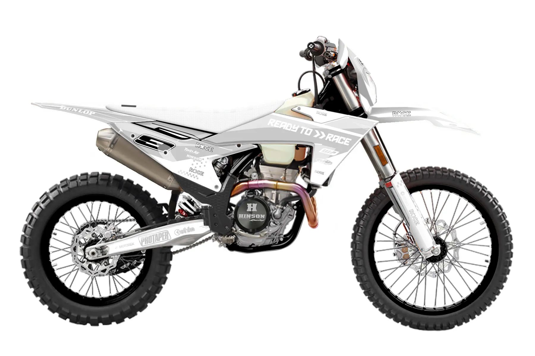 «Uphill» — готовый комплект графики серии Staple для KTM Enduro Graphic Kit KTM EXC-F 350 2024. В комплекте: графика на бак и боковые облицовки, крылья (переднее и заднее), передний щиток, номерные таблички, защита вилки. Материал: ПВХ-винил 80 мкр с холодной ламинацией 300 мкр, общая толщина 380 мкр; покрытие глянцевое или матовое на выбор. Устойчив к UV-излучению, воде, бензину и мойке высокого давления. Клей акриловый на сольвентной основе — постоянный, для гибких пластиков. На простых поверхностях монтируется без нагрева; для сложных изгибов рекомендуем фен. Этот пресет можно заказать как есть или взять за основу в конструкторе: поменять цвета, добавить стартовый номер и свой бренд. Производство — 3–5 рабочих дней, доставка по России СДЭКом или Почтой, по СНГ — курьерскими службами.
