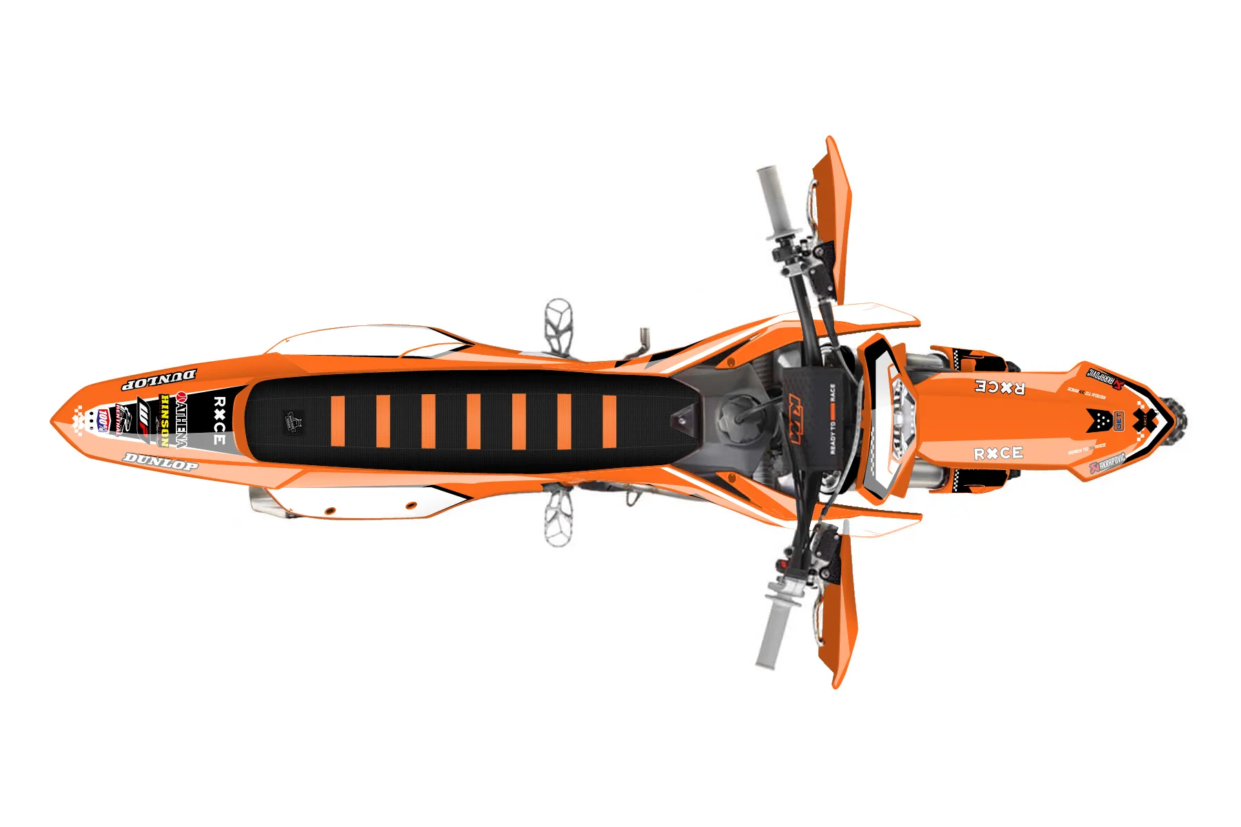 «Volt» — готовый комплект графики серии Staple для KTM Enduro Graphic Kit KTM EXC-F 350 2024. В комплекте: графика на бак и боковые облицовки, крылья (переднее и заднее), передний щиток, номерные таблички, защита вилки. Материал: ПВХ-винил 80 мкр с холодной ламинацией 300 мкр, общая толщина 380 мкр; покрытие глянцевое или матовое на выбор. Устойчив к UV-излучению, воде, бензину и мойке высокого давления. Клей акриловый на сольвентной основе — постоянный, для гибких пластиков. На простых поверхностях монтируется без нагрева; для сложных изгибов рекомендуем фен. Этот пресет можно заказать как есть или взять за основу в конструкторе: поменять цвета, добавить стартовый номер и свой бренд. Производство — 3–5 рабочих дней, доставка по России СДЭКом или Почтой, по СНГ — курьерскими службами.